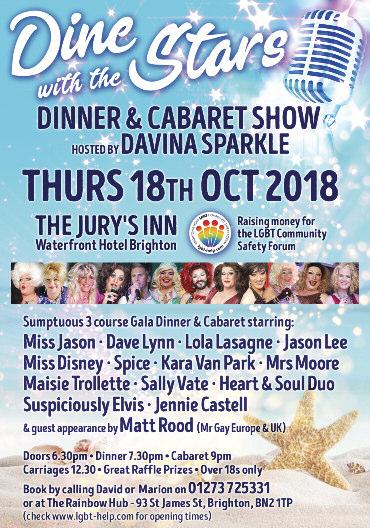 Pride Colour My World Festival Preston Park: Saturday 4, 12pm–late Pride Village Par ty Saturday 4, 6pm–midnight; Sunday 5, 3–9pm Pride Pleasure Gardens www.brighton-pride.org/pride-pleasure-gardens Pride Festival tickets www.brighton-pride.org/tickets/