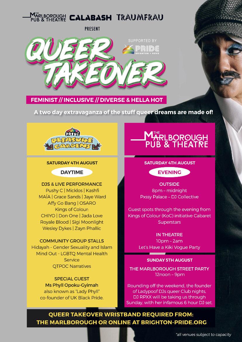 Calabash, the Marlborough Pub & Theatre, and Traumfrau have got your queer weekend at Brighton Pride covered Their two-day extravaganza is the stuff that queer dreams are made of! Dance to your favourite DJs, see some sh*t hot acts, and queer up your Pride weekend like you mean it! Working in partnership with Brighton & Hove Pride, this event centres on people who identify as women, trans, nonbinary, and in particular queer people of colour and their allies! The Queer Takeover is across two areas on Friday 3–Sunday, August 5: