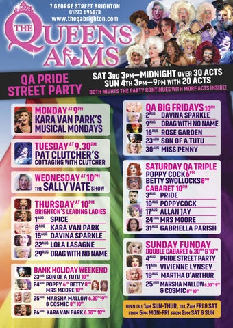 ) Pride Village Street Party (PVP) St James’s St and Marine Parade, Saturday 3 (4pmmidnight) and Sunday 4 (3pm-9pm) Once Kylie brings the entertainment on the park to a close, it’s on to the Village Street Party in St James’s St and Marine Parade where businesses come together to celebrate Pride and raise extra funds for the Rainbow and