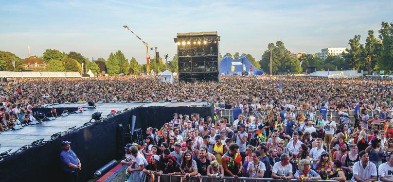The Pride Community Parade, the biggest free par ty in the city, was a riot of colour attracting the largest crowds seen in recent years to the parade route Community concerns expressed after last year’s event about the parade being too corporate were tackled head on by Pride organisers who introduced a new protocol for entry to the parade This year less than a third of parade entries were from business or corporates who all signed a protocol agreeing they were not there merely to promote their brand or product but were representing