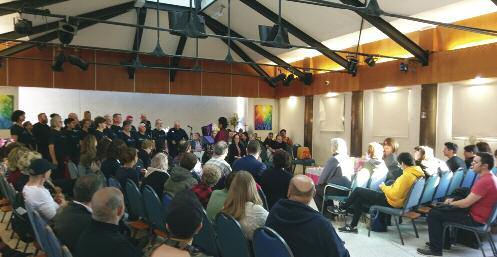 Stephanie Jayne Scott and Sam Hall hosted the vigil and the R ainbow Chorus, conducted by their musical director Aneesa Chaudhr y, provided the musical interludes culminating with a beautiful rendition of This Is Me