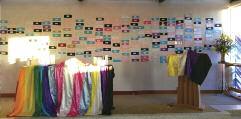 ) The chapel, dressed with beautiful silk trans and non-binary flags, provided the perfect backdrop for members of the trans and non-binary communities with their allies to honour the lives of those lost to anti-trans hate crime in the last year