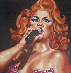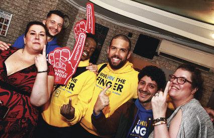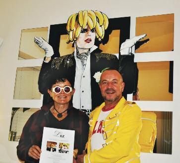 The event raised a fantastic £5,773 which included a contribution from the meals per head charge of £2,213, the raffle raised £1,460 and £2,100 from the sale of the Tom of Finland por trait kindly donated by Jamie Durrant via Graham Munday and the team at The Brighton Bear Weekend. Singer Diane Horan from the duo Hear t & Soul walked away with the stunning creation af ter making the highest bid
