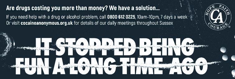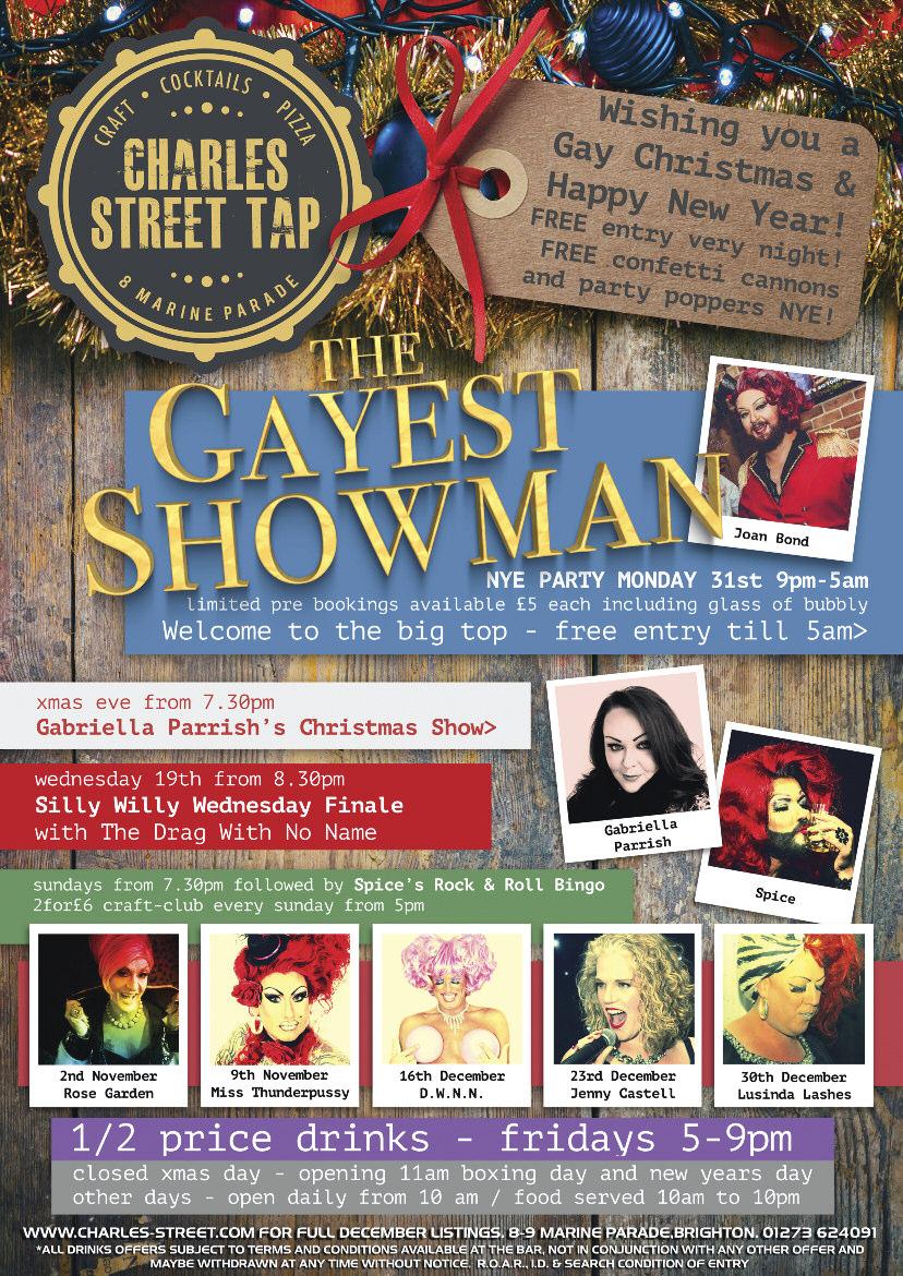 Performances by the Actually Gay Men’s Chorus, Brighton Belles Women’s Chorus, Brighton Gay Men’s Chorus, R ainbow Chorus, R ebelles Female Voices, R esound Male Voices, Qukelele and Sweet Chilli Singers Mince pies and mulled wine will be served in the interval by Lunch Positive Tickets £10, available online from www brightonwasconcer t info and from Prowler on St James Street Last year’s concer t sold out in advance so there are unlikely to be tickets on the door All profits will be donated to local Brighton charity, Lunch Positive, the weekly lunch club for people who are HIV positive Follow the Par tnership on f / worldAIDSdayBH