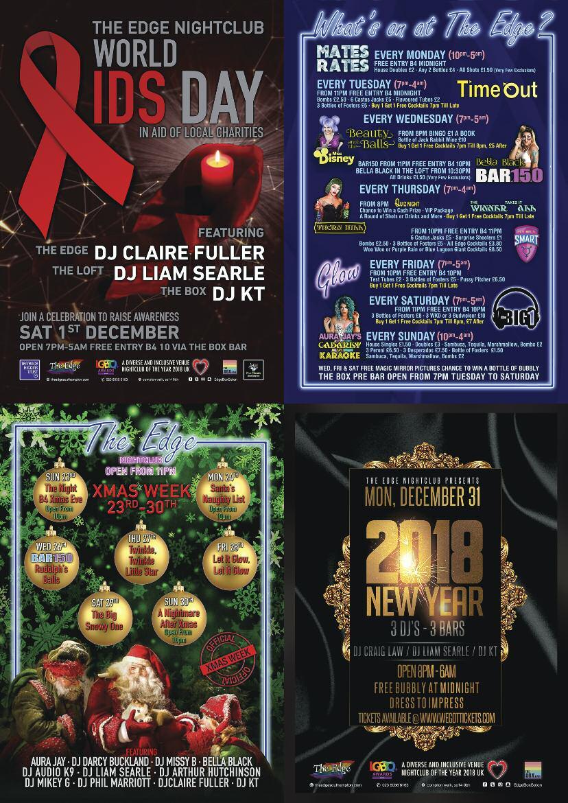 ) ANNUAL WORLD AIDS DAY CABARET @ Charles Street Tap fundraiser for THT South on Sat, Dec 1 Hosted by Drag With No Name, with Sally Vate, Jason Thorpe, Pat Clutcher and many more to be announced Doors open 7 30pm (following the Candle Lit Vigil at the AIDS Memorial) Entry £2 minimum donation, all going to THT South