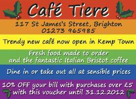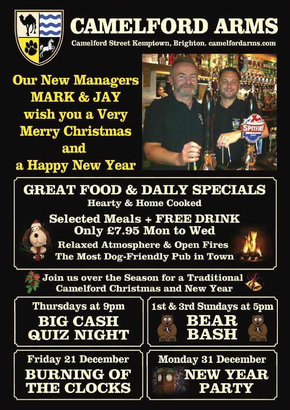 41 CAFÉ TIERE 117 St James’ St, 965985 7 CAMELFORD ARMS 30-31Camelford St, 622386 8 CHARLES ST BAR 8-9 Marine Parade, 624091 27 FISHERMAN’S REST 123-125 Kings Rd, 323888