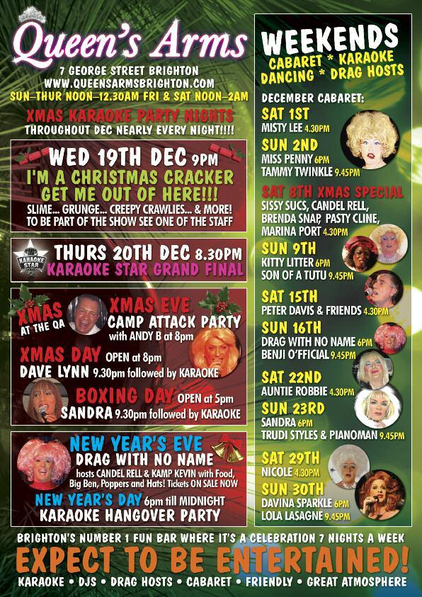 ▼ QUEENS ARMS: CABARET EXTRAVAGANZA FOR WORLD AIDS DAY, 9pm hosted by Drag With No Name featuring Dave Lynn, Son of a Tutu, Mar y Mac, Mzz Kimberley, Tammy Twinkle, Tanya Hyde, Nicole & Geri Love All proceeds to local HIV charities