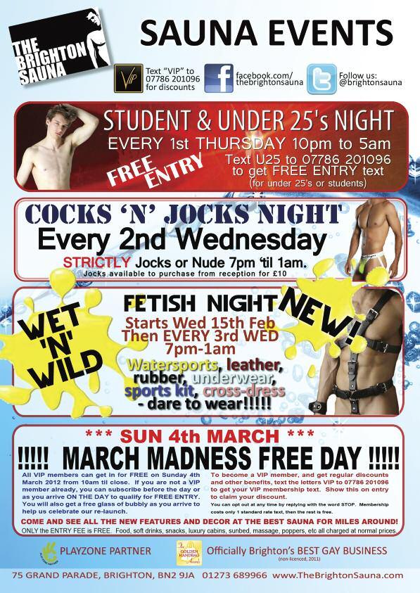 BRIGHTONSAUNARAISE£1,156.13FORTHT TheBrightonSauna raised £1,156.13 for THTSouth attheirChristmasPartyin December2011.Themoneywasraisedbythesaunadonating£5fromeveryentryfee ontheday,arafflewithprizesincludingahelicopterflightandlunch,Sundaydinner fortwoat112ChurchStreetandachefexperienceatSam’srestaurant;donations (includingacashdonationfromtheSauna)andfromthecollectiontinsatthevenue. A THTSouthspokesperson said: “We’dliketothankthestaffandcustomersofThe BrightonSauna.ItwasafabulouseveningwithentertainmentfromTammyTwinkleand stripper,TeddyBear.ThemoneywillgodirectlytotheSaunaFastestservice,thefree andconfidentialRapidHIVtestingserviceeveryWednesdayevening.”