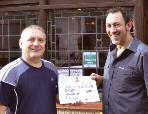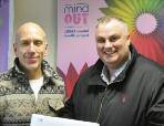 GaryParteger,co-ordinatorat Lunch Positive,receivesachequefor £800 from SteveChillingworth,ownerofthe Marine Tavern,theproceedsoffundraisingover ChristmasandNewYeardoneinpartnership with Prowler,StJames’Street,whohelped withtheprizes.Themoneywasraisedfroma raffleandauctionofsomeoftheprizesfrom theraffle.