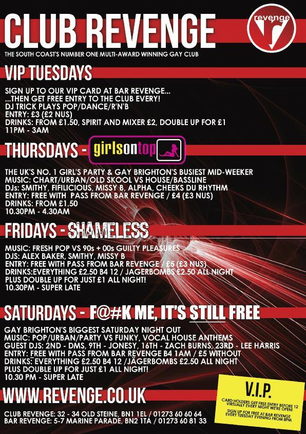 • Envy Nightclub (above Charles Street): 8-9 Marine Parade, Brighton