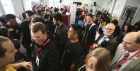 ■ Vince then hangs the OUT140 coming out stories in the library foyer