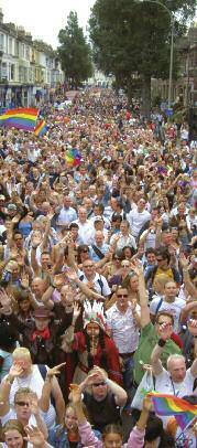 ■ A FILMED HAPPENING: Launch of LGBT History Month at Brighton Town Hall for dignitaries, press and community, with POETRY FOR ONE VOICE & MANY; the HANKIE QUILT; Bear Patrol with ADOPT-A-PANSY (fundraiser for the Sussex Beacon, £5 for each an orphaned pansy); MAKE THEM EAT CAKE (fundraiser for Lunch Positive: Fairy, cakes for cash!); Barefoot Wine; and the HULLABALOO Community Quire. Photos by Sam Collins, filming by Shelly Telly, recorded by Radio Reverb The Mayor of Brighton & Hove will speak, cut ribbon and bless the Pink Triangle