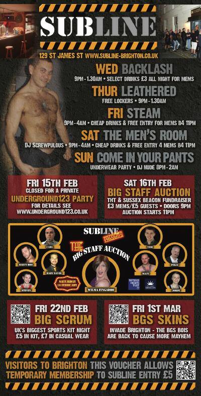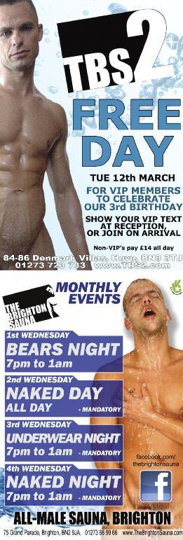 Gay men’s sexual health clinic Wed 5-6 30pm Opposite Royal Sussex County Hospital entrance Abbey Rd Tel: 01273 664721