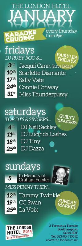 ) Davina Sparkle is producing a series of Friday evening cabaret dinners at the Queens Hotel starting Friday, January 3 at 7pm. The evening starts with a bubbly and canapé reception followed by a three course Comedy Kings & Queens Gala Dinner with waiter service and entertainment from the outrageous Davina Sparkle, comedy impressionist Frank Sanazi and Tom Mones, Midland IT girl drag queen Tiara Thunderpussy and top UK comic Geoff Jukes
