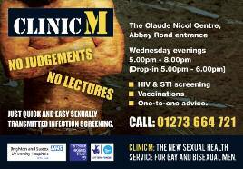 Free confidential testing & treatment for STIs including HIV. Hep A & B vaccinations. Out Patients Dept of Royal Sussex County Hospital, Eastern Rd, from 6-8m. Tel: 01273 664721 www.brightonsexualhealth.com
