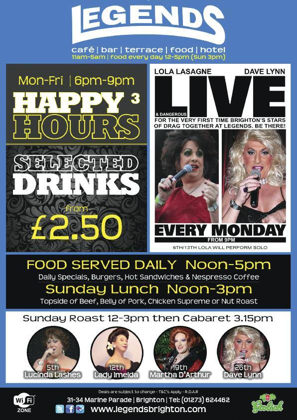 Ideal for birthdays, couple nights out, office parties or nights out with friends. Tickets: £29.50, for bookings call 01273 321222