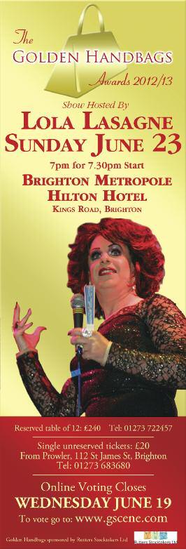 t The voting for this year’s Golden Handbag Awards closes on Wednesday, June 19 at noon There is no postal vote this year so the only opportunity you have to register your vote is online at www.gscene.com. The awards will be presented at a star studded evening at the Brighton Metropole Hilton on Sunday, June 23, in the Oxford Suite, starting at 7.30pm