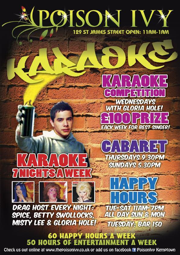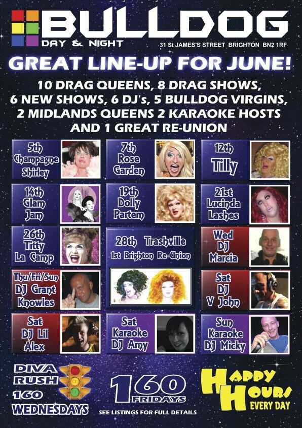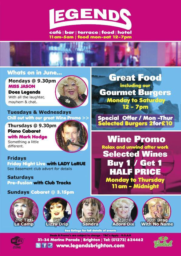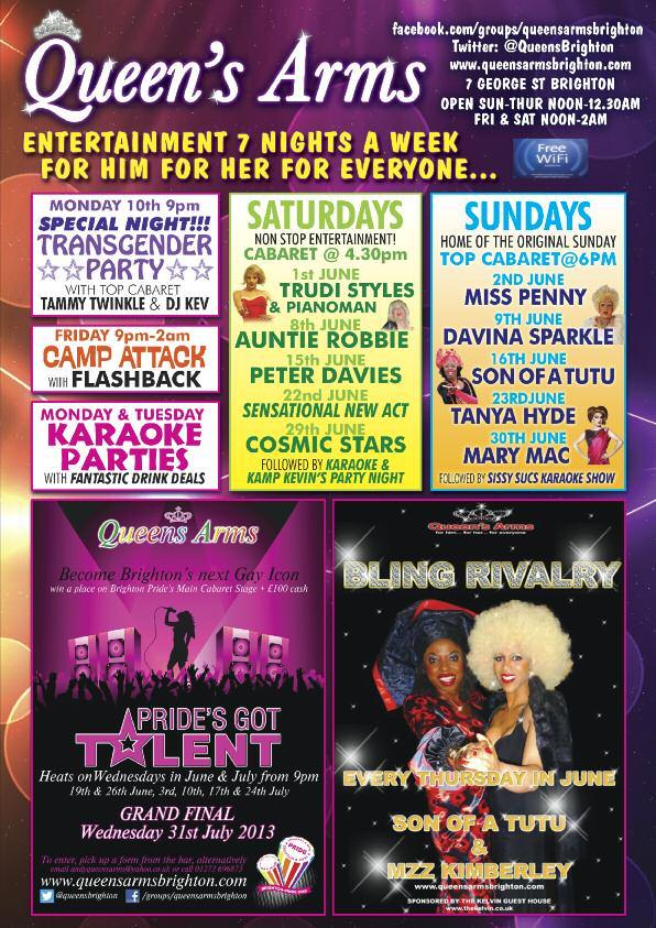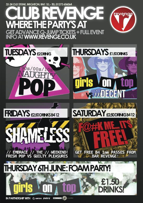 Limited £9 tickets are still available from: Prowler (London and Brighton), Queens Arms, Charles Street, Legends, Bar Revenge, Poison Ivy, Abar, Marine Tavern, Dr Brightons and 112 Church St