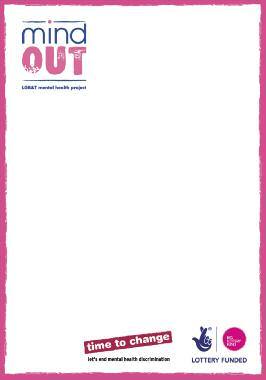 Independent, impartial info, guidance for LGBT people with mental health problems. 24 hr confidential answerphone: Tel: o1273 234839 or info@mindout.org.uk www.mindout.org.uk