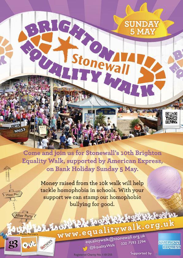 • £1 per head for each ticket sold is ring fenced for the R ainbow Fund to distribute through their grants program administered by the Sussex Community Foundation to LGBT organisations in Brighton & Hove