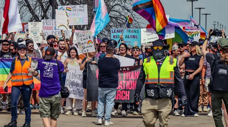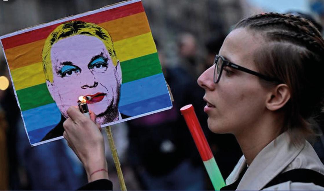 An estimated 2,000 people protested in Budapest on March 25 against a new law that aims to ban the annual LGBTQ+ Pride march and allows the use of facial recognition software to identify attendees.
