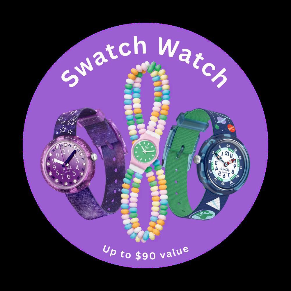 Earning youth will select choice of Swatch Watch up to $90 value. Many options to choose from!
