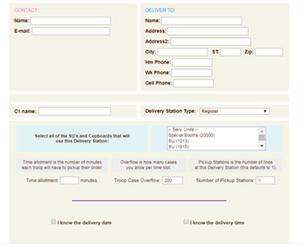 Contact Judy Johnson if you need one of the grey areas edited. Most of the information on the Delivery Station Setting Tab does print on the delivery ticket. This is also where you will set the parameters for the troop pick up schedule.