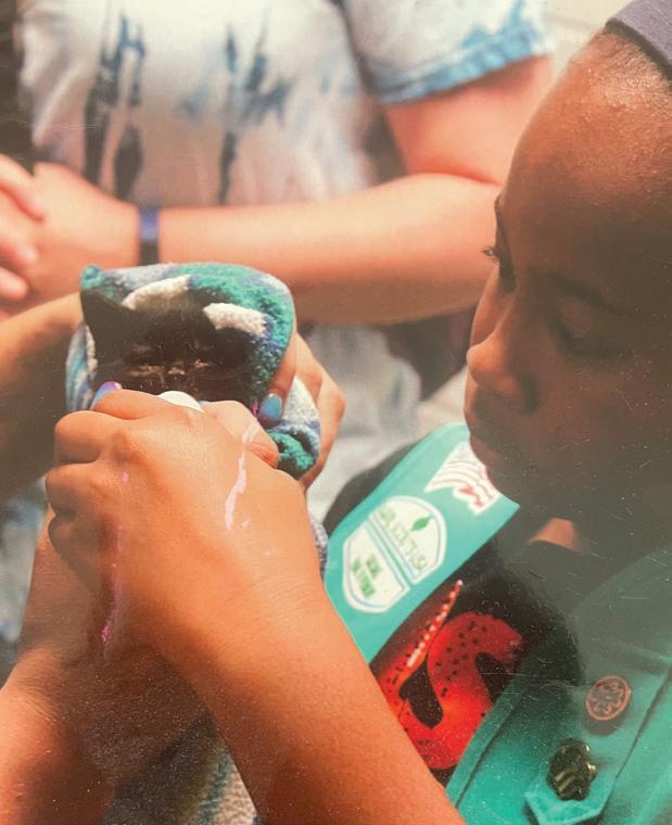 Sienna, a member of Girl Scout Troop 10492, partnered with the Watauga Humane Society in Boone for her Gold Award project, “Sassy Cat Supporters.” She created a website and booklet to inform groups like volunteers, college students and Girl Scouts about the importance of fostering to inspire change and increase the number of available families. She assembled kits to support new foster parents with essentials such as litter boxes, food and blankets, and she also presented community events to support the foster programs.