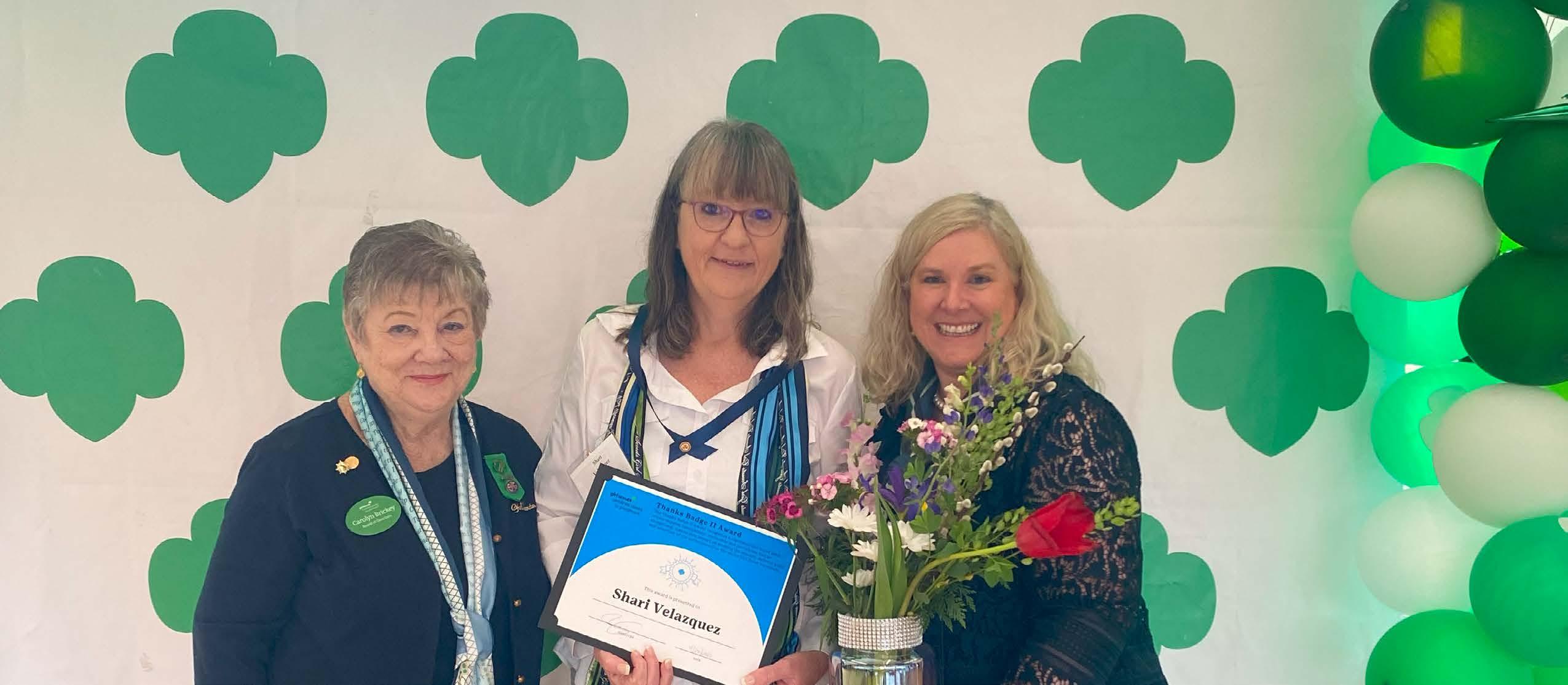 The day concluded with our annual Adult Recognitions Ceremony where the council awarded years of service and membership year pins as well as recognized 21 adult members with national board-approved awards. We were also honored to present Shari Velazquez with the Thanks Badge II Award, recognizing her continued dedication to the Girl Scout Movement.
