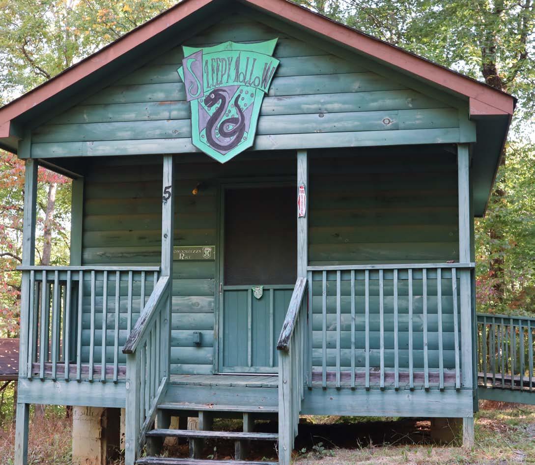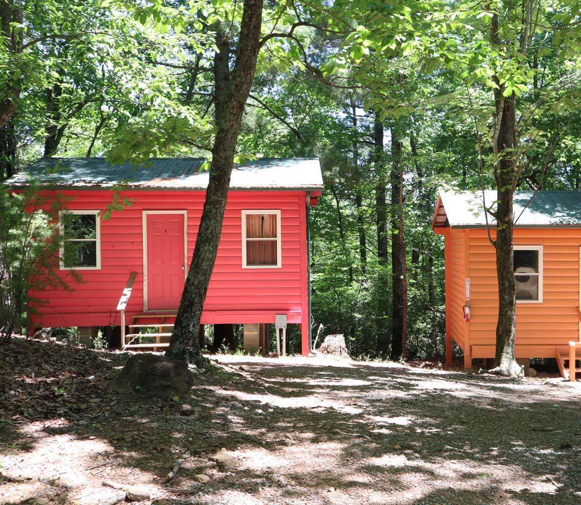 Across the road from Savannah lives the juniors of Caraway. The porch connecting the cabins makes this site a camper favorite! This site has eight small cabins each with four beds, a nook for bags and a ceiling light. The Unit Shelter has picnic tables and an outdoor kitchen containing a firepit and a refrigerator. There is a bathhouse within the unit.