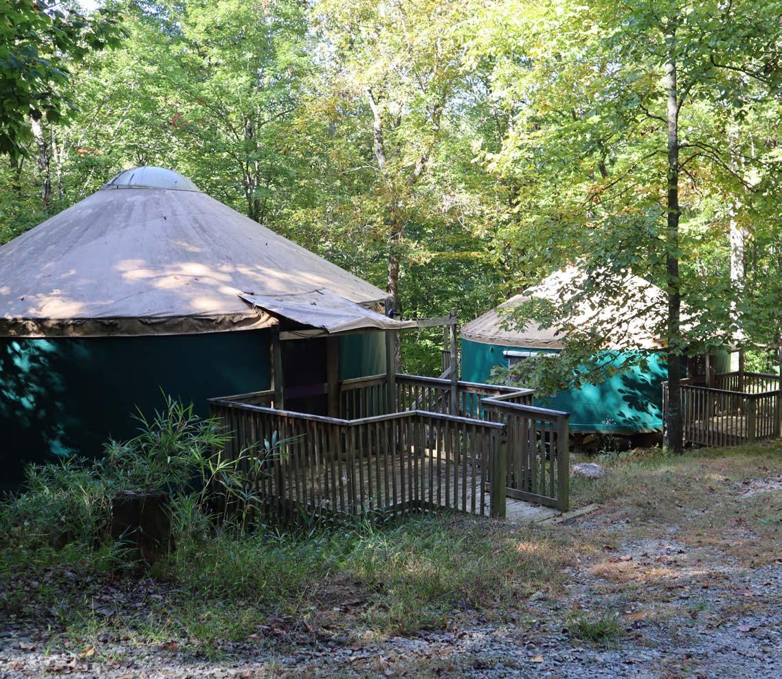 This unit consists of three yurts that sit far back in the forest and closer to nature. There are two yurts that sleep 12 people and one that sleeps eight. This unit has a shelter with a fireplace and picnic tables, a refrigerator, bath house and a fire ring.