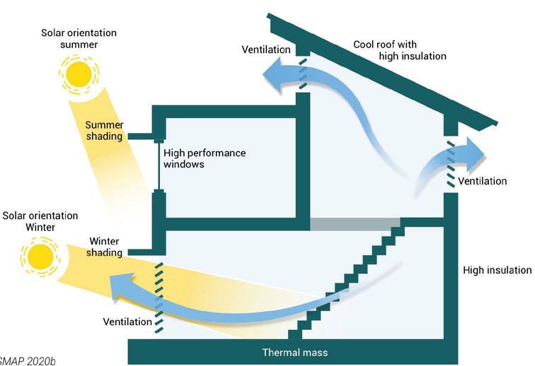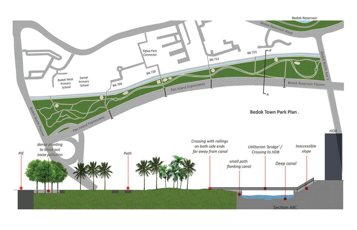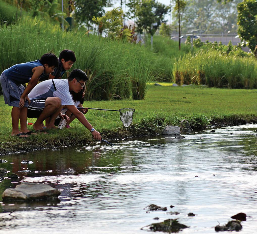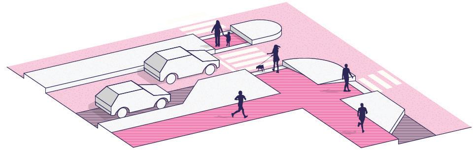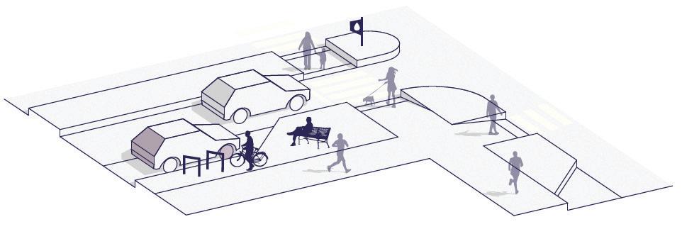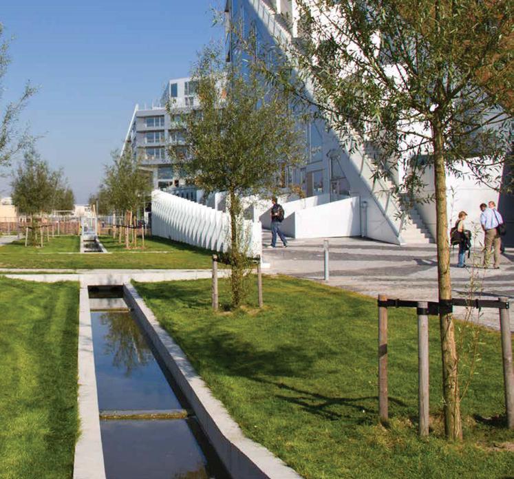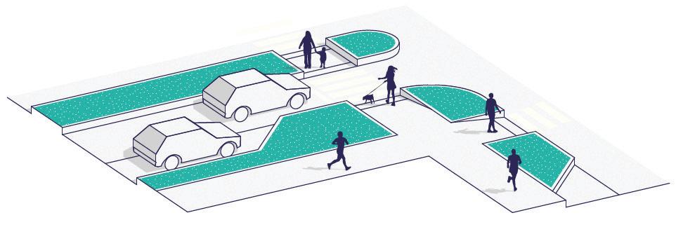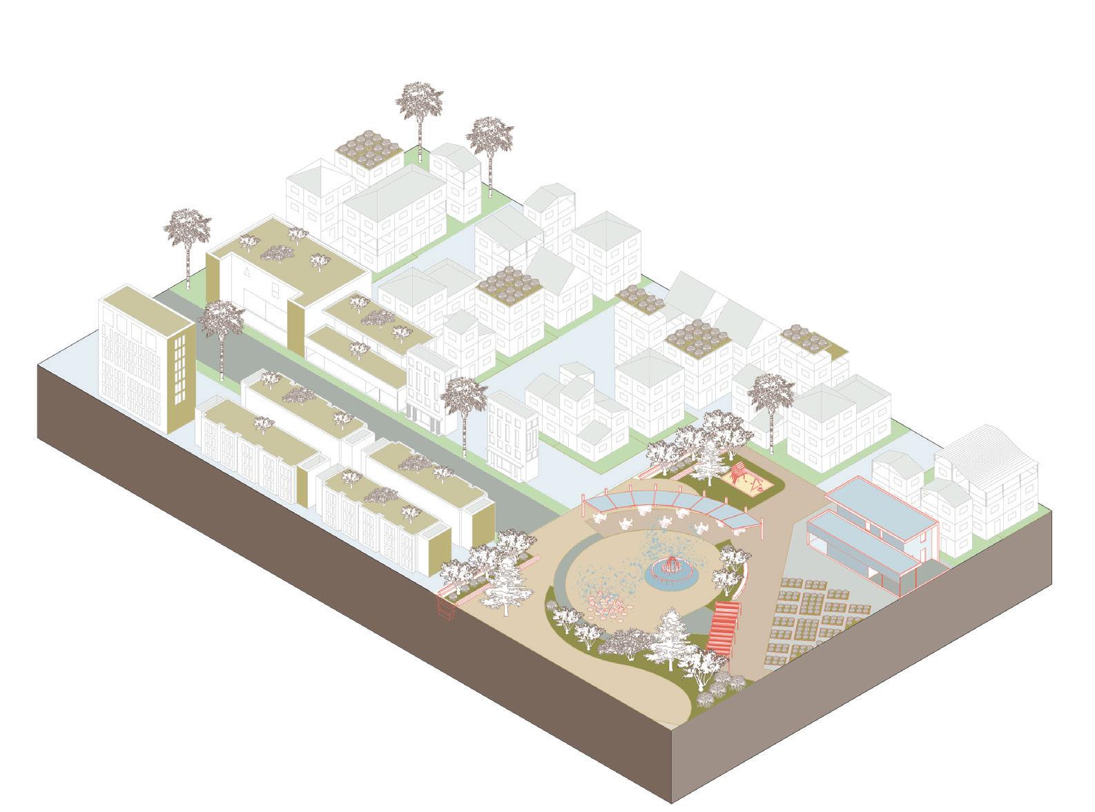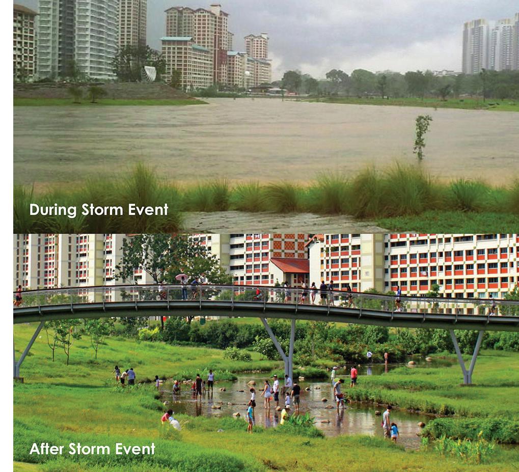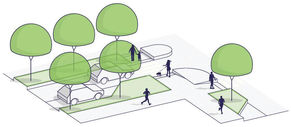 Coastal surge and flooding, stormwater, heat and biodiversity adaptation strategies integrated as lush, active public spaces.