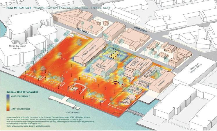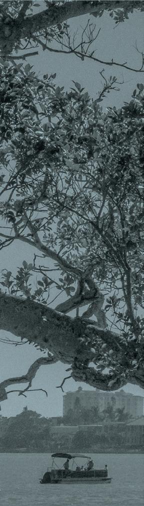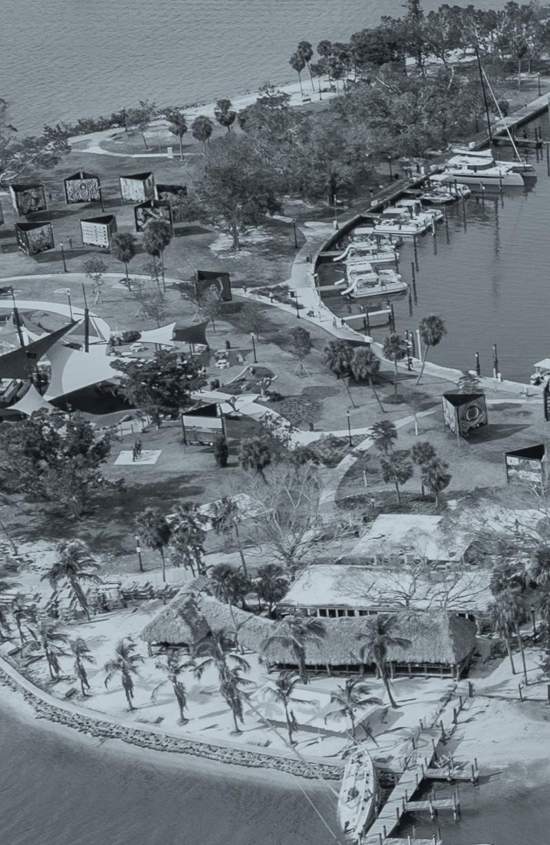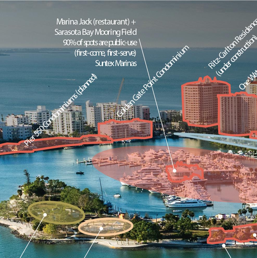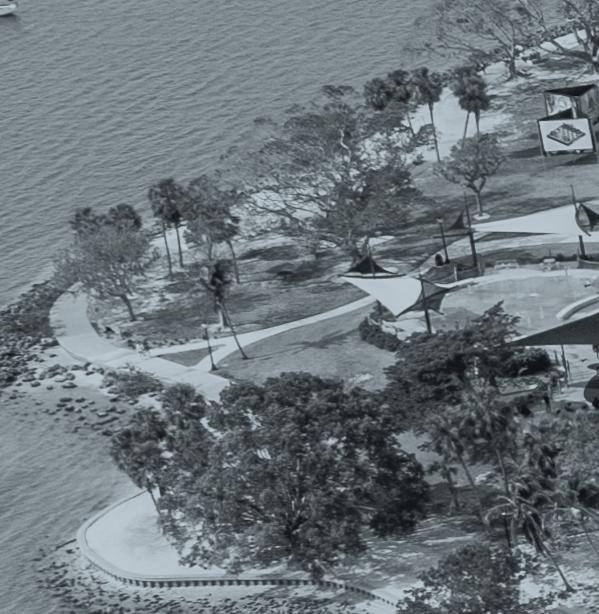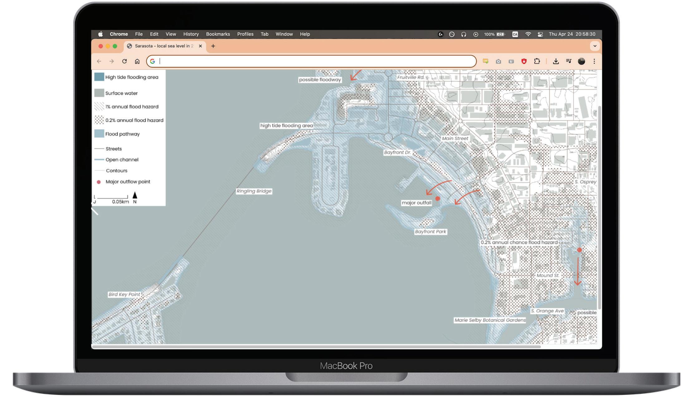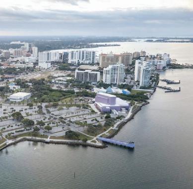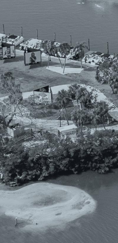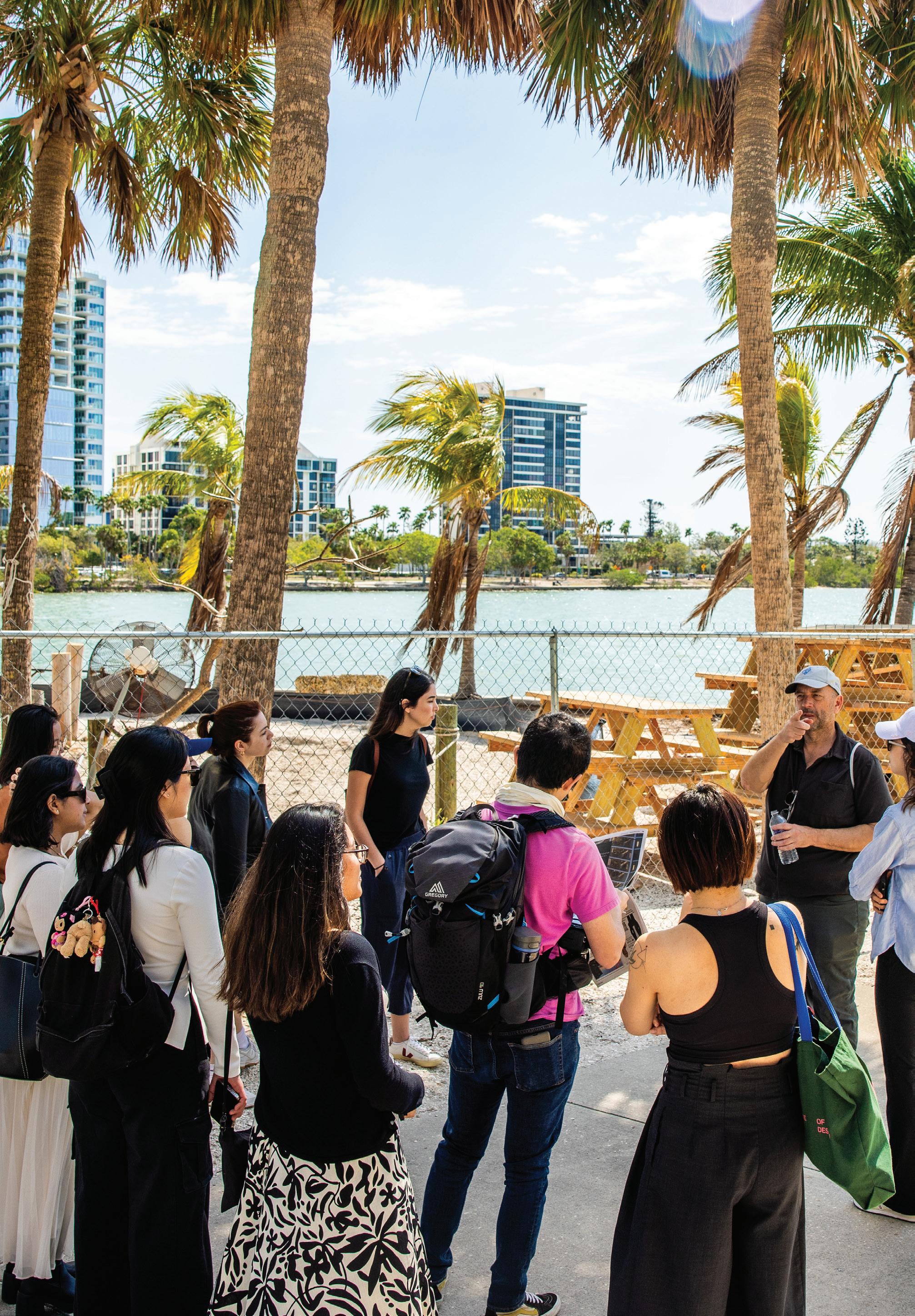 The work focuses on the bayfront of Sarasota, Florida, a subtropical urban center noted for its cultural institutions (Ringling Museum, Architecture Sarasota, etc.), its architectural legacies (in the form of the Sarasota School of Architecture), stunning beaches, and outdoor lifestyle. Sarasota is known more recently due to the direct impacts it has suffered from a series of climateinduced storms. The city was hit by two hurricanes (Helene and Milton) in the fall of 2024, in addition to a number of other unprecedented tropical storms and flooding events throughout the two years prior. Temperatures are rising, and most of the core parts of the city have been declared heat emergency zones. The impacts of all of these are being felt now, and will continue to be felt years into the future.