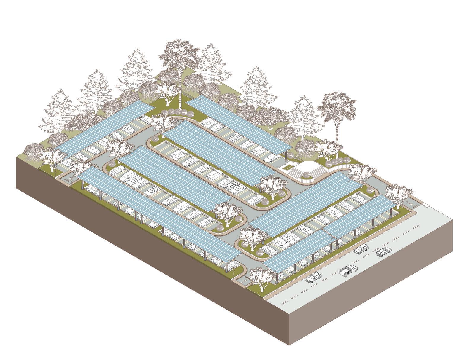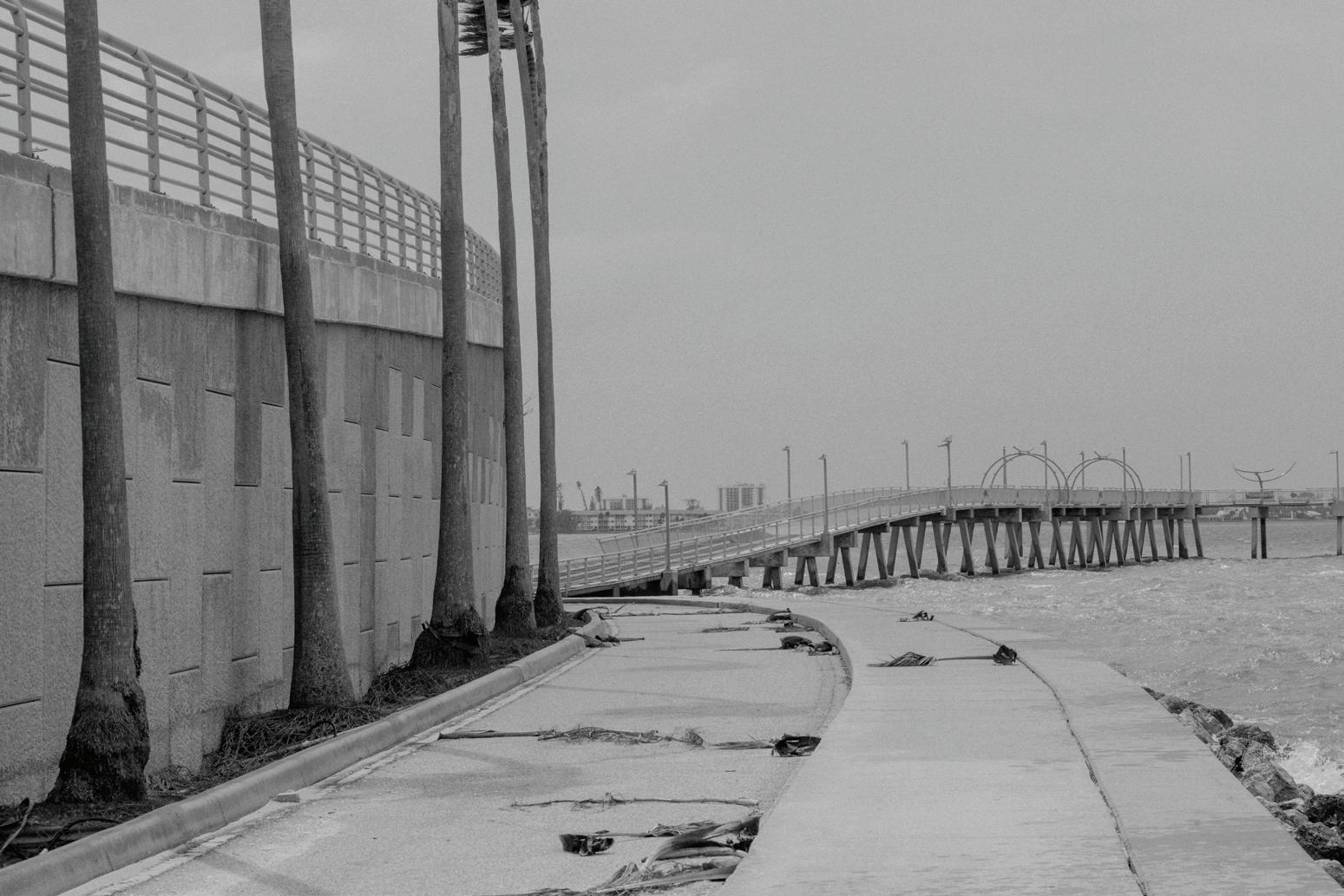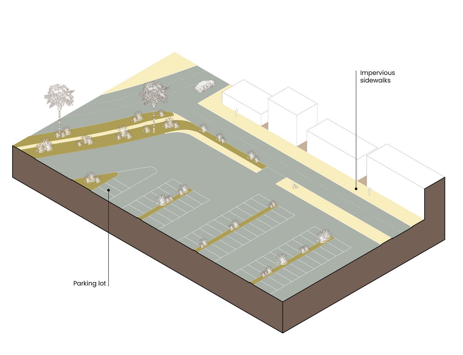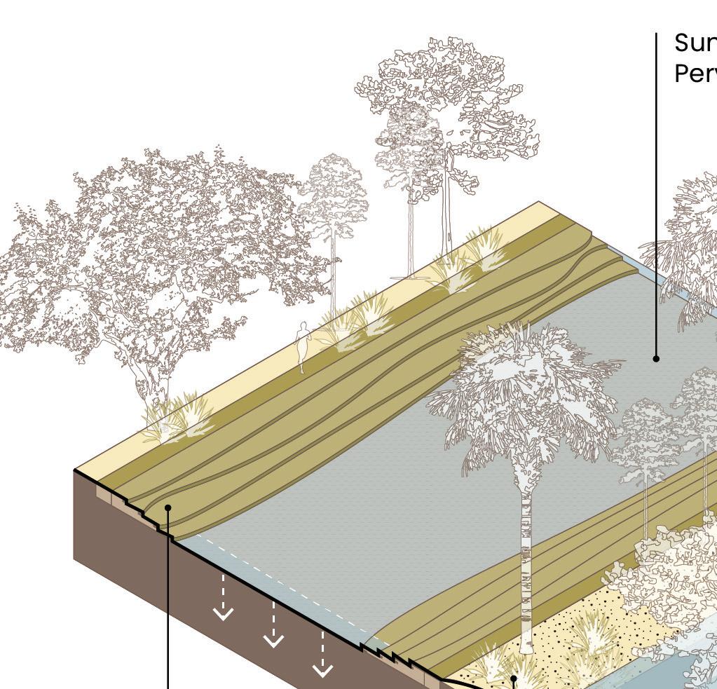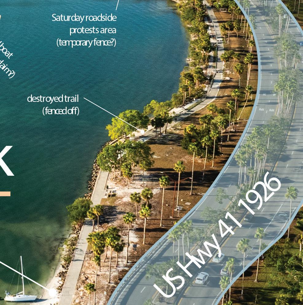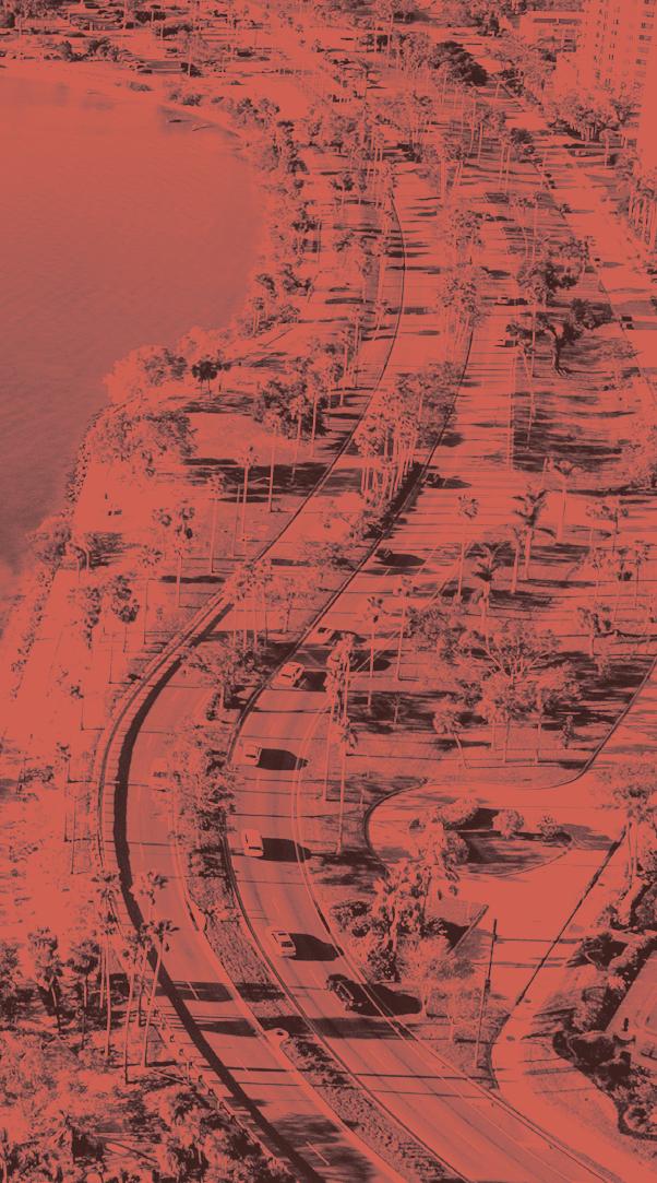 The work focuses on the bayfront of Sarasota, Florida, a subtropical urban center noted for its cultural institutions (Ringling Museum, Architecture Sarasota, etc.), its architectural legacies (in the form of the Sarasota School of Architecture), stunning beaches, and outdoor lifestyle. Sarasota is known more recently due to the direct impacts it has suffered from a series of climateinduced storms. The city was hit by two hurricanes (Helene and Milton) in the fall of 2024, in addition to a number of other unprecedented tropical storms and flooding events throughout the two years prior. Temperatures are rising, and most of the core parts of the city have been declared heat emergency zones. The impacts of all of these are being felt now, and will continue to be felt years into the future.