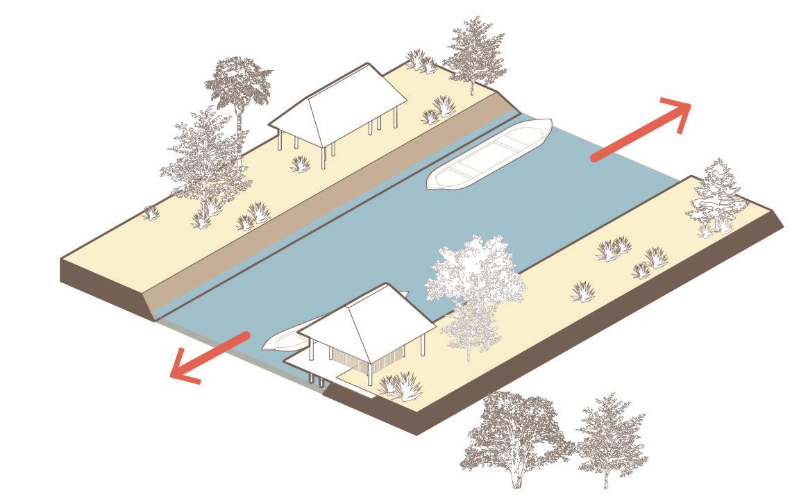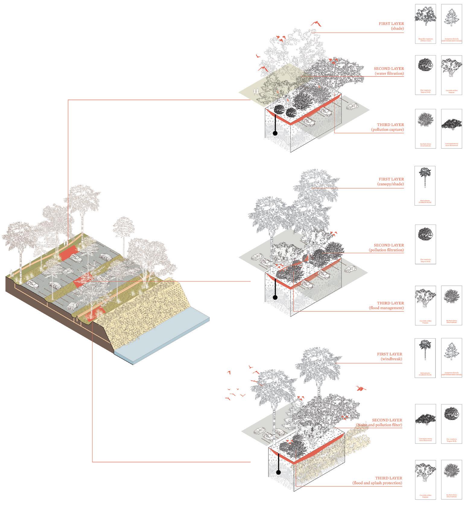 The work focuses on uncovering current and impending climate threats; how these threats may have been amplified by current urban development; predevelopment conditions, ecologies and cultures that might point toward more holistic, multi-species approaches to human habitation; case studies and precedents for climate adaptation and resilience strategies from around the world; and speculations on a range of tactics that could allow for ways to live with and adapt to ongoing and projected changes in the environment.