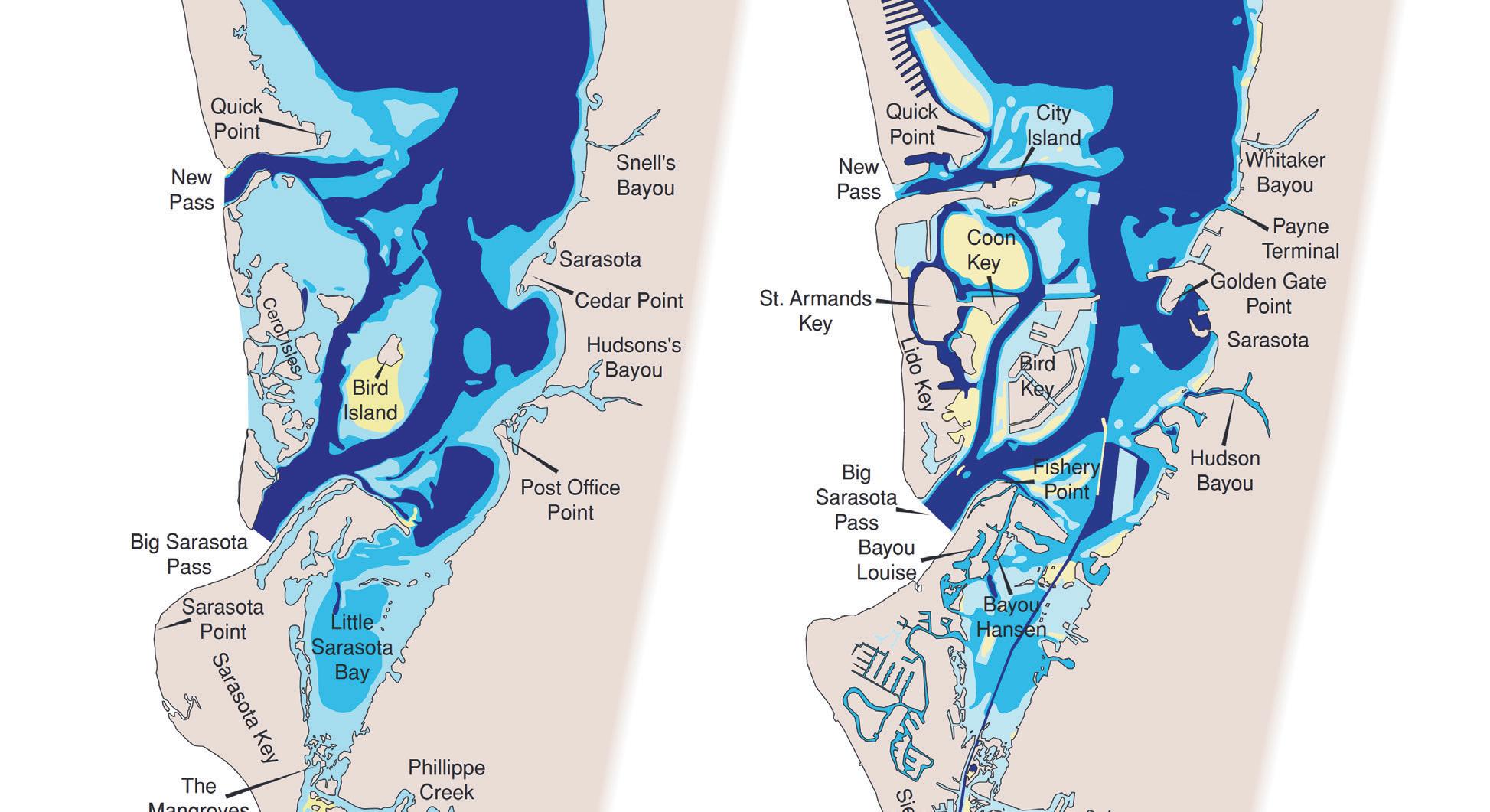Sarasota was once far from the coast. Sea levels were lower, and the area was dry and inland. As the climate warmed and seas rose, the environment became tropical. Source: National Geographic.