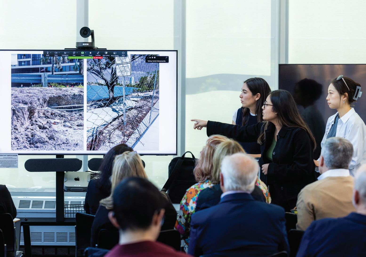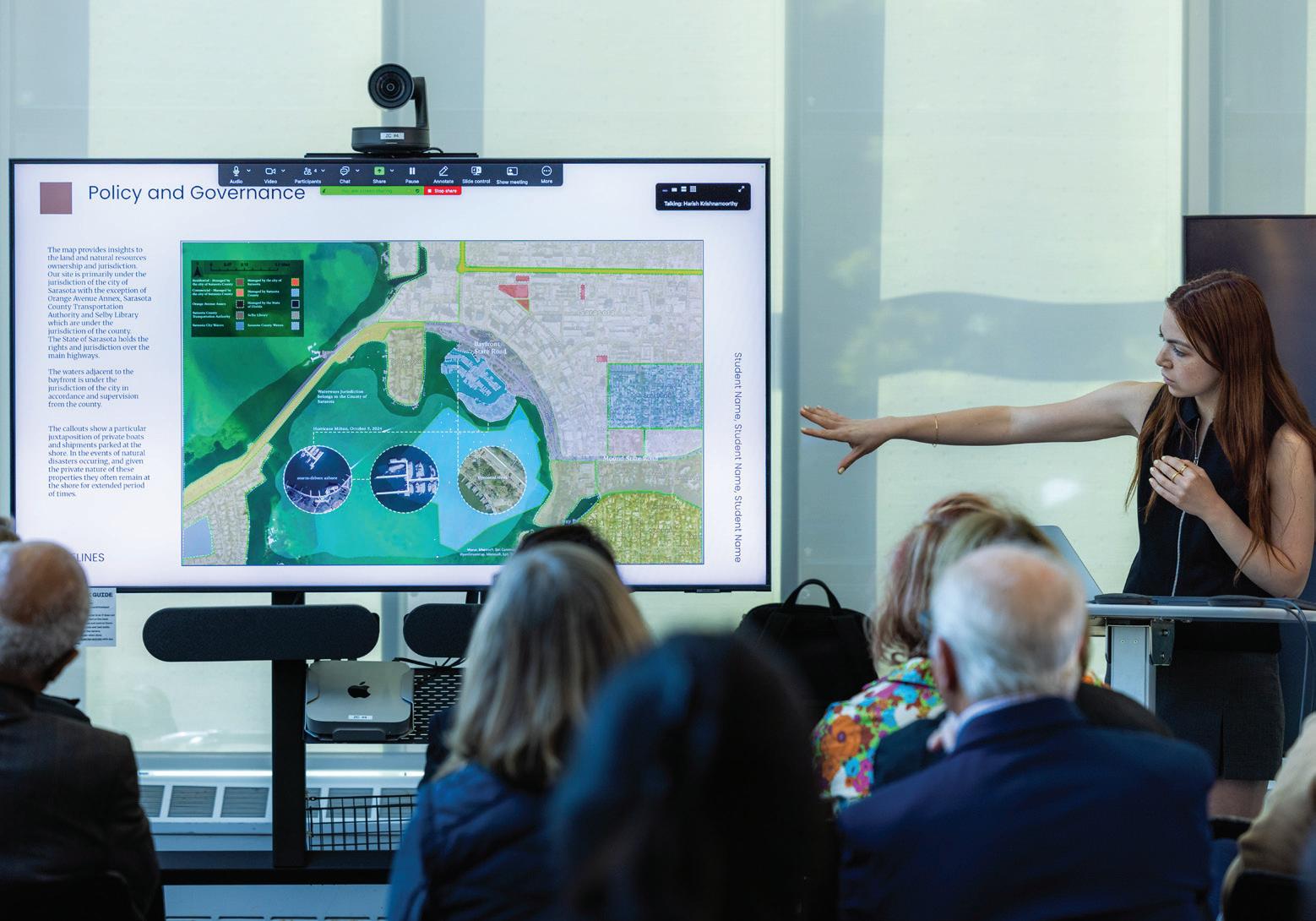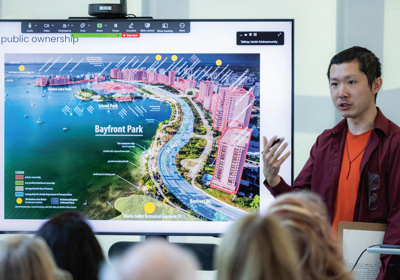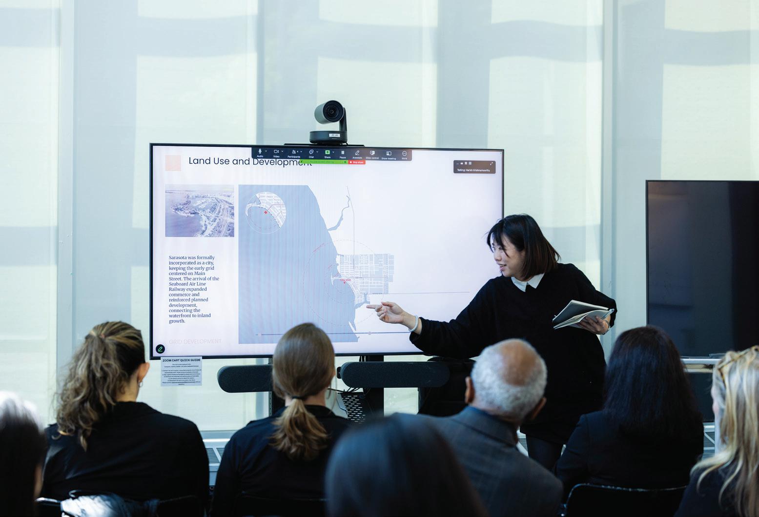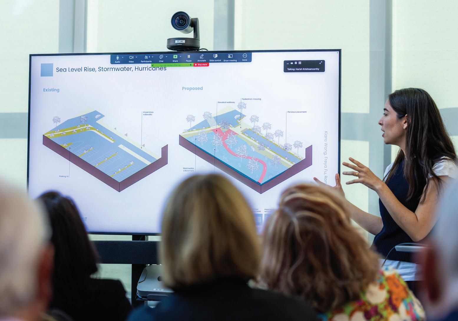 A final presentation and discussion of student proposals took place in May of 2025 at Harvard’s Graduate School of Design in Cambridge, Massachusetts. The work was reviewed by national leaders in climate design and adaptation; local leaders and stakeholders from Sarasota; and Harvard faculty.