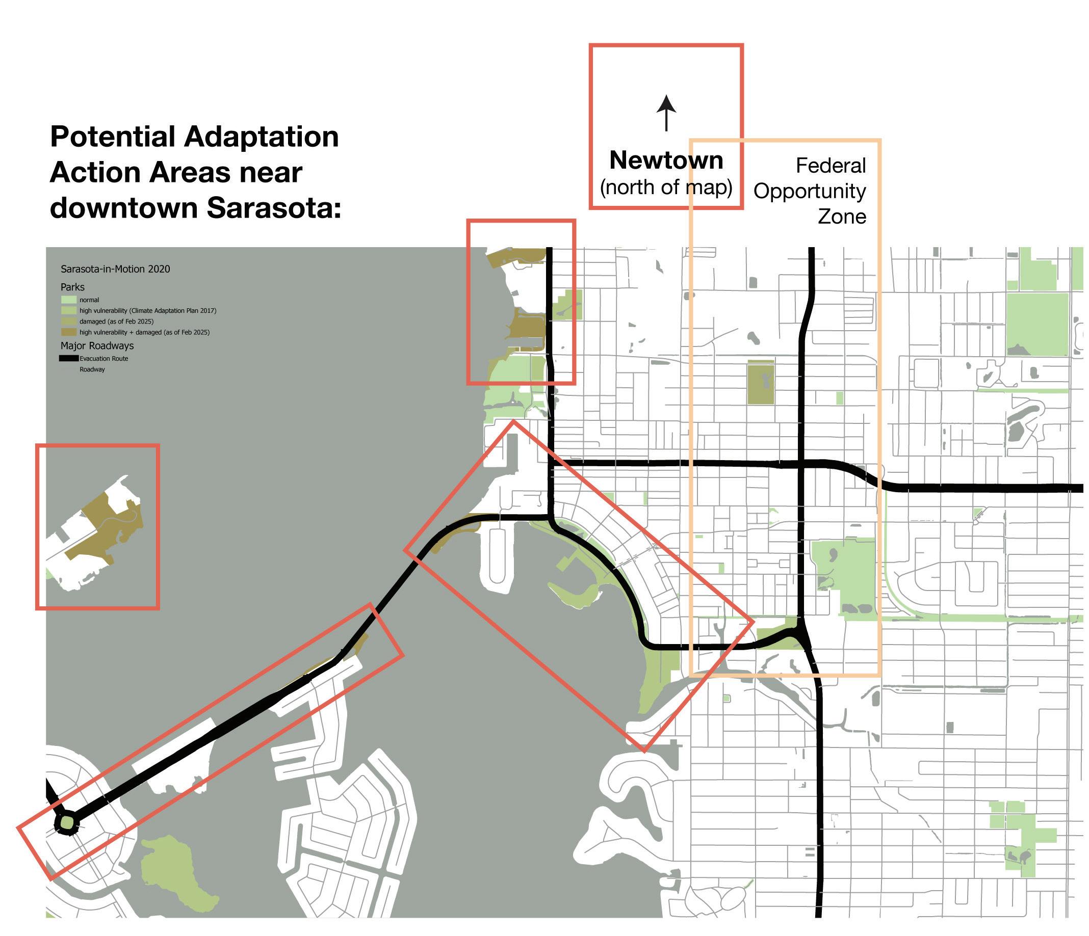 The work herein documents a semesterlong, interdisciplinary project-based seminar taught at the Harvard University Graduate School of Design. It focuses on applied climate research and adaptation design, examining in detail and through both analytical and projective text and drawings the climate changes that are impacting a densified urban center–in this case, Sarasota, Florida.
