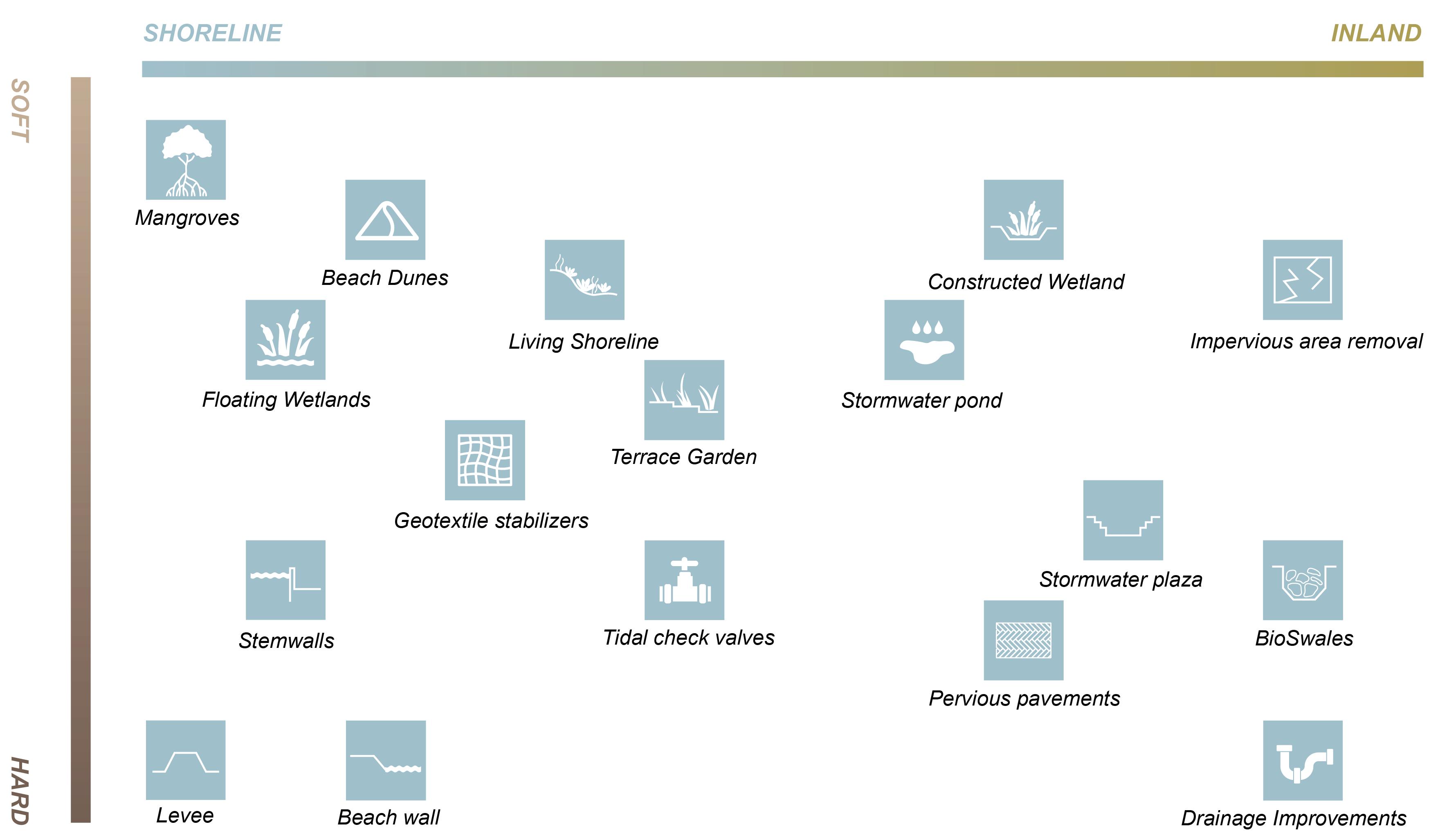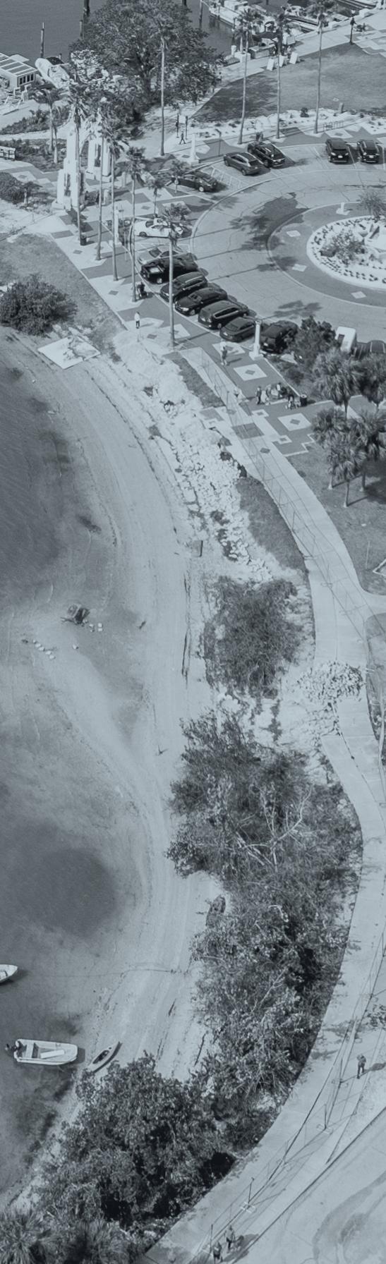 The final phase of work focuses on the development of illustrative, threedimensional toolkits of potential adaptation strategies for the Downtown Sarasota Bayfront. Rather than a comprehensive master plan, the toolkits lay out alternate ways that resilient and adaptive design could be applied to address the most pressing climate challenges identified. Topics include environmental, landscape, infrastructural, policy, and economic recommendations and potentials.
