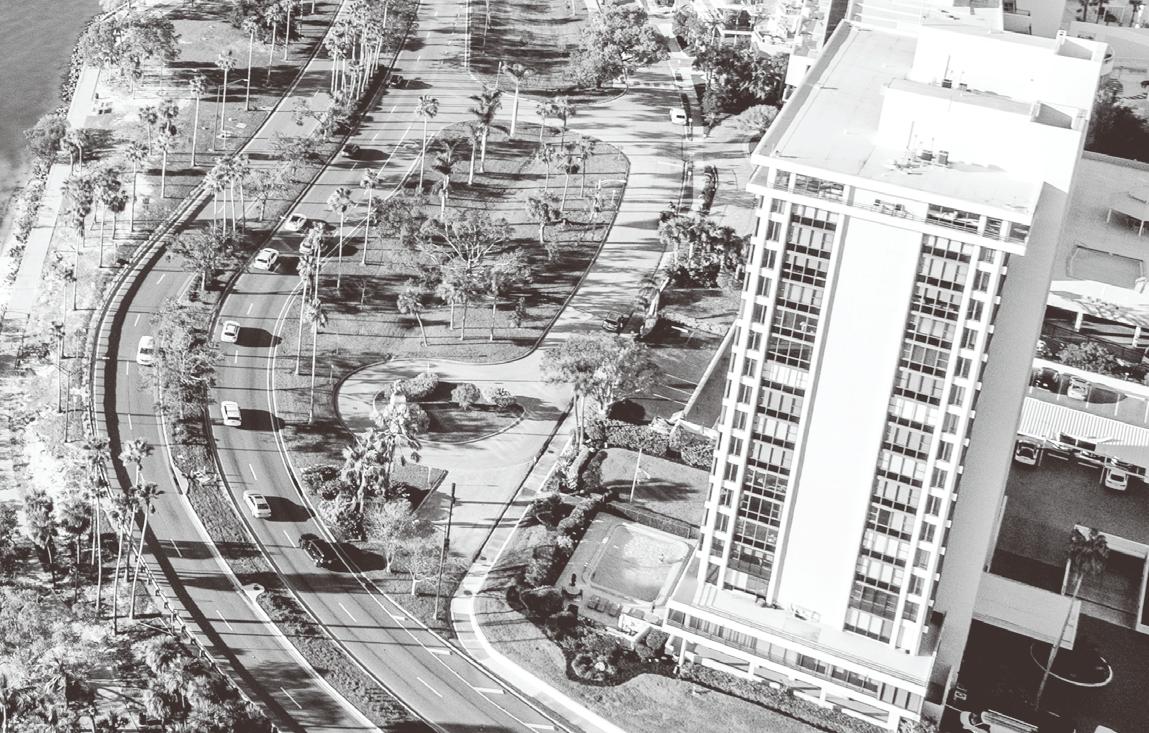 This approach is deeply rooted in Sarasota’s design culture. The Sarasota School of Architecture established an internationally recognized legacy of innovation grounded in climate intelligence, treating sun, wind, and landscape as generative forces rather than constraints. That legacy set an expectation that design in Sarasota should respond directly to environmental conditions. Today, the challenge is to extend that ethos beyond individual buildings to the scale of urban systems and public landscapes, particularly along the Bayfront.