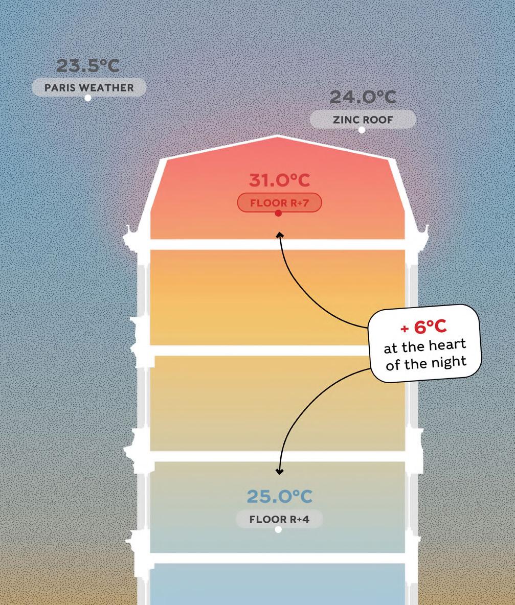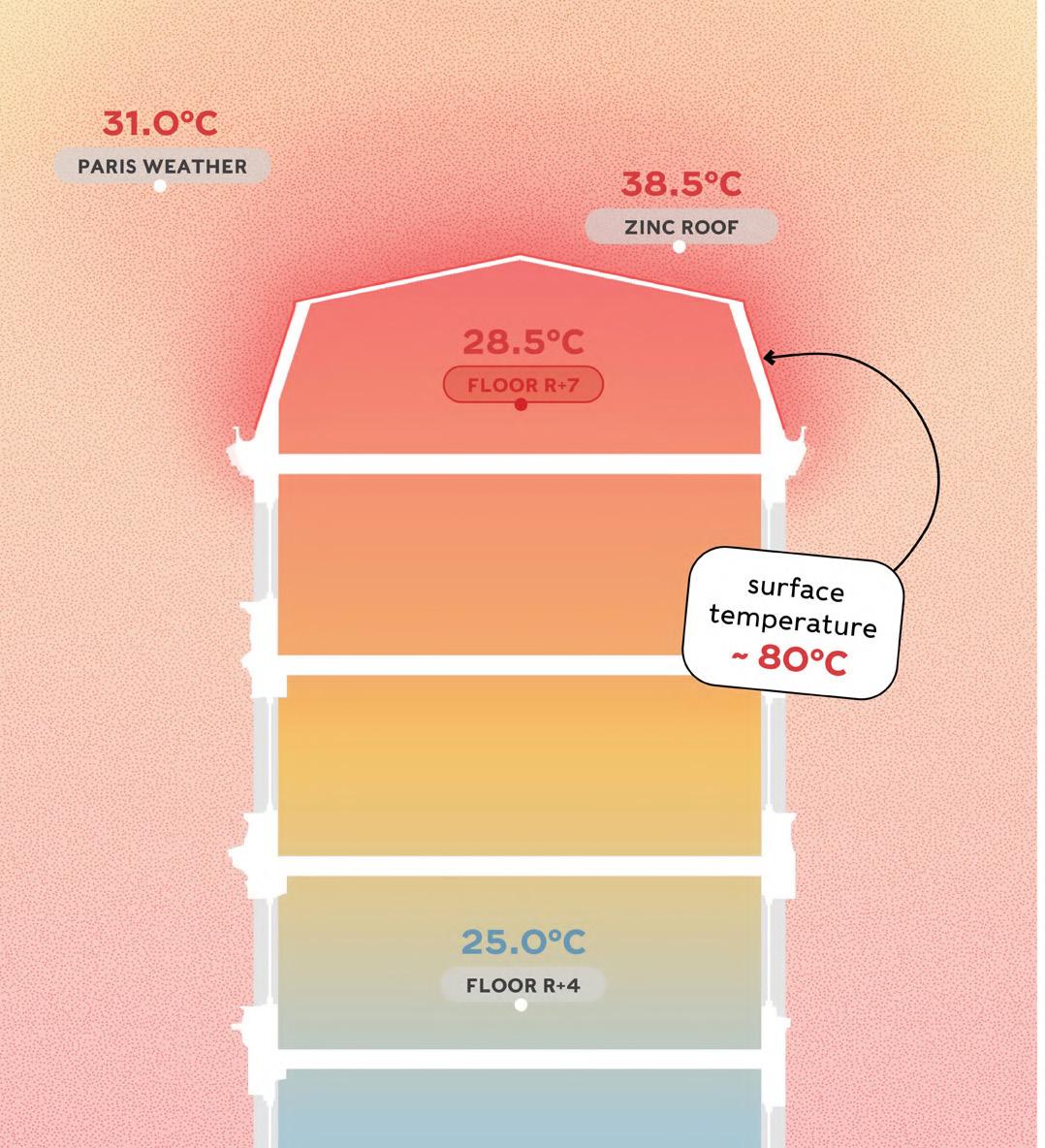 The heatwave episode of summer 2003 also revealed the vulnerability of residents living in poorly insulated, poorly oriented homes under rooftops. It killed nearly 15,000 people in France, and in Paris, more than a thousand victims—many of them lived in substandard housing, particularly in chambres de bonne (Keller, 2011).3 The chambre de bonne is in part housing for the Parisian proletariat, what people call today naturally occurring affordable housing. A proletariat that clashes with the bourgeois floors below and has long been facing health threats due to the substandard insulation of top floors.