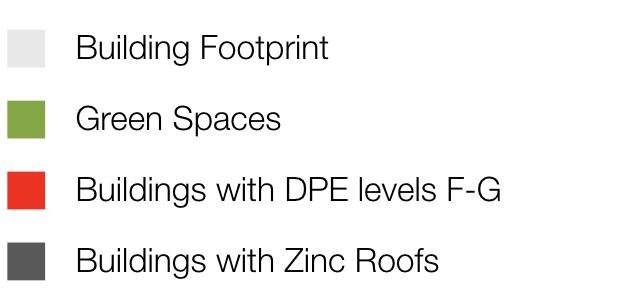 Despite its proximity to the cooling effect of the Seine river, in Central Paris there are high densities of buildings with zinc roofs and without many large parks. It is most susceptible to heat and will benefit most from greening. Chambres de bonnes are more likely to be located in these dense areas and experience higher heat vulnerability. Older residents and young residents are more vulnerable to heat and are chambres de bonne s residents in high proportions. Greening would in part help alleviate health risks for these susceptible residents.