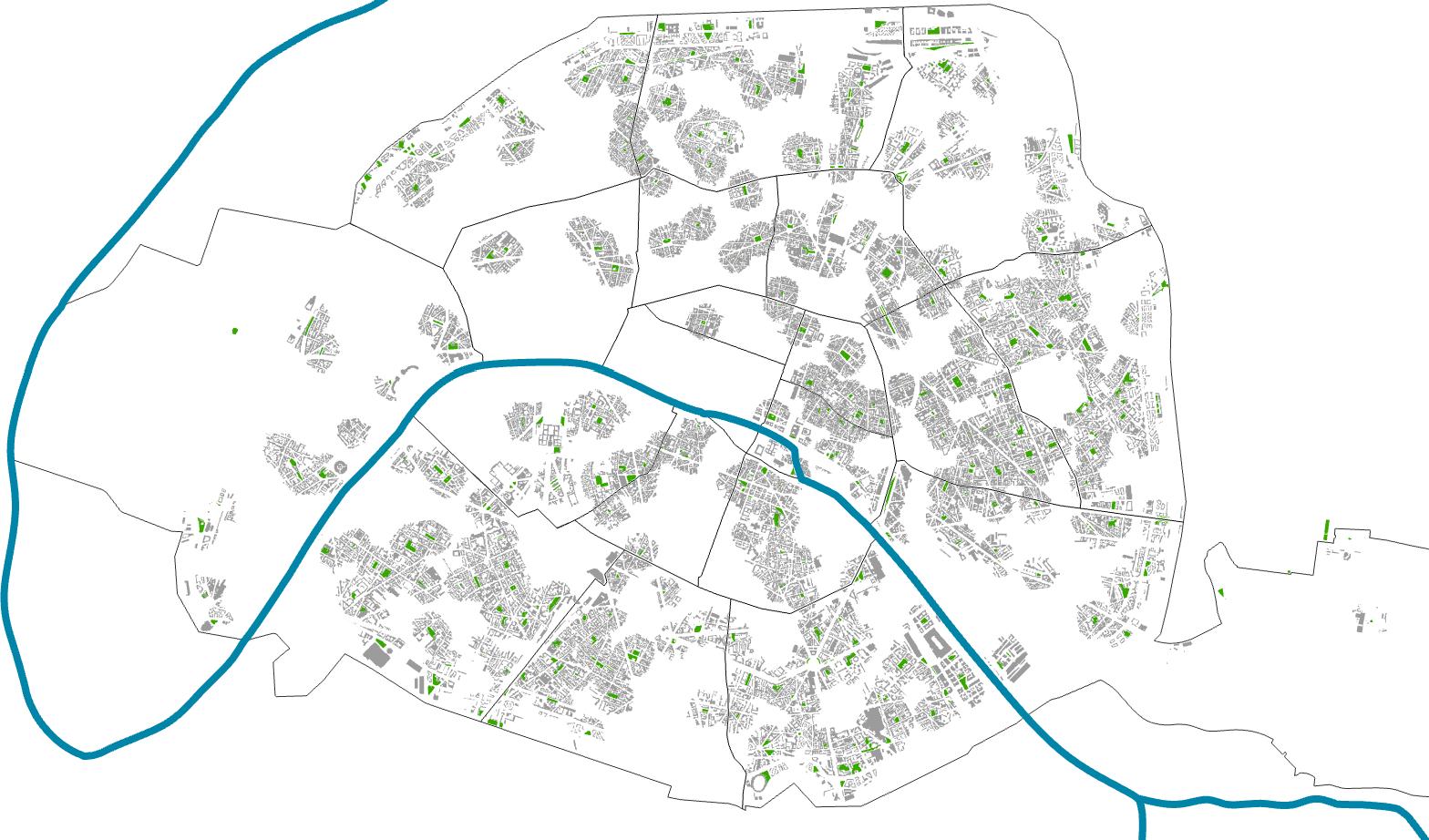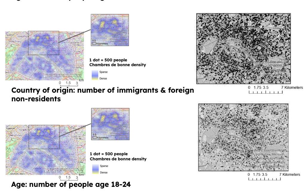 Effective healthy planning begins with understanding the current context. In the Greater Paris area, the exact number of dwellers living directly beneath rooftops has remained unknown for years. Working in teams, students were tasked to use Geographic Information System (GIS) tools and open-source data to map and quantify the number of residents directly impacted by rooftop adaptations. This process helped identify which local communities might have experienced the most significant effects, both positive and negative, of a restructuring of the city as it recently mandated the climate adaptation of its poorly insulated housing stock—a large part of which is represented by Haussmannian top floor units, referred to as chambres de bonne