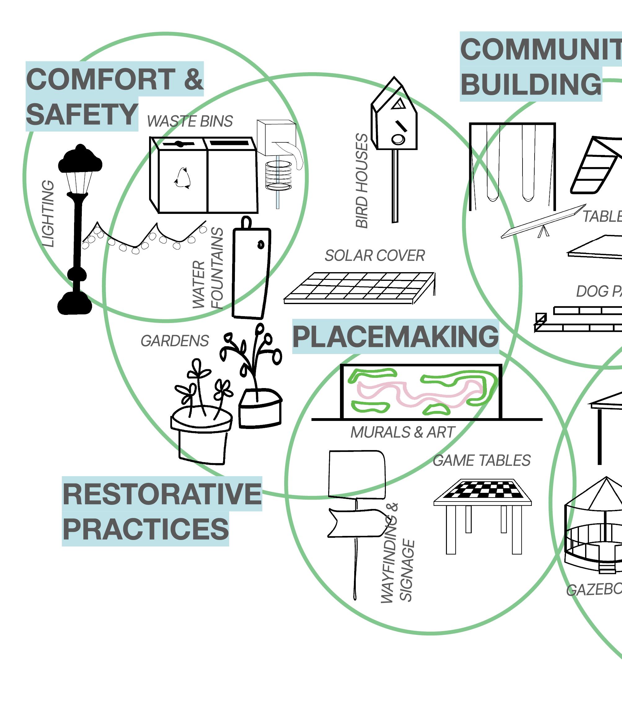 Key considerations for health-informed planning include exploring how it can address social determinants of health, such as housing, transportation, and access to green spaces. Identifying leverage points within these systems allows students to develop more targeted and effective interventions. Applying a health equity lens ensures that proposals prioritize the needs of vulnerable populations who are disproportionately affected by environmental health issues. Students learned that in order to strengthen planning recommendations, it is essential to provide evidence supporting the potential health benefits of proposed actions. This involves balancing both qualitative and quantitative data from health and environmental assessments. Finally, this first part of the project forced students to also recognize the limitations of planning alone in improving health outcomes, emphasizing the need for interdisciplinary collaboration with other sectors, starting with public health, policy and design.