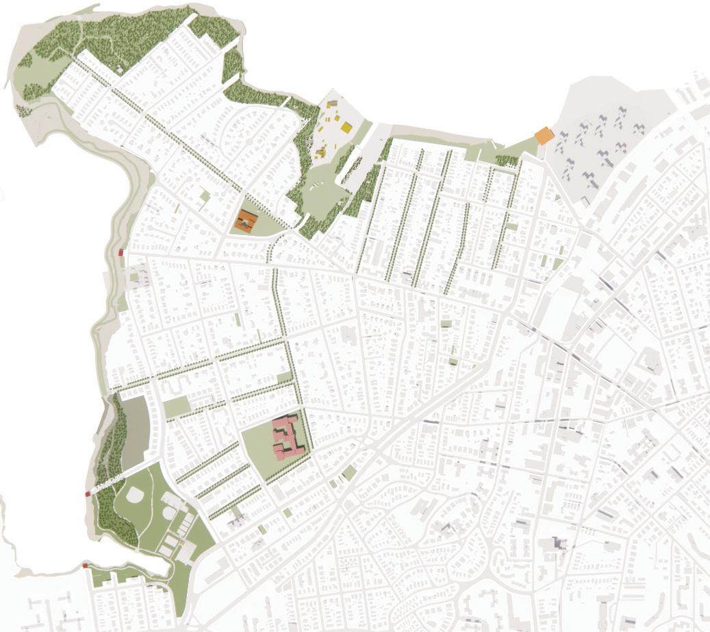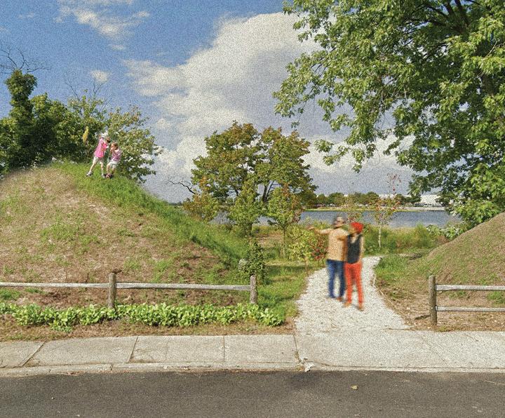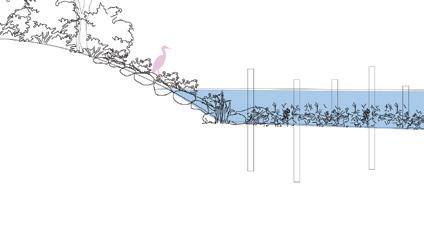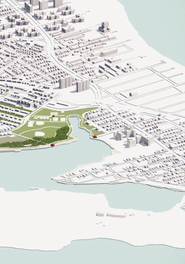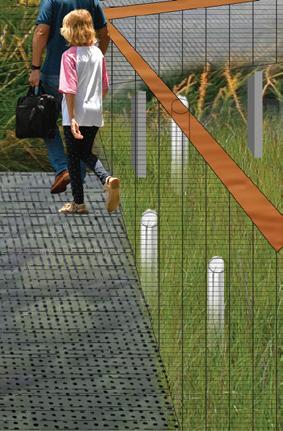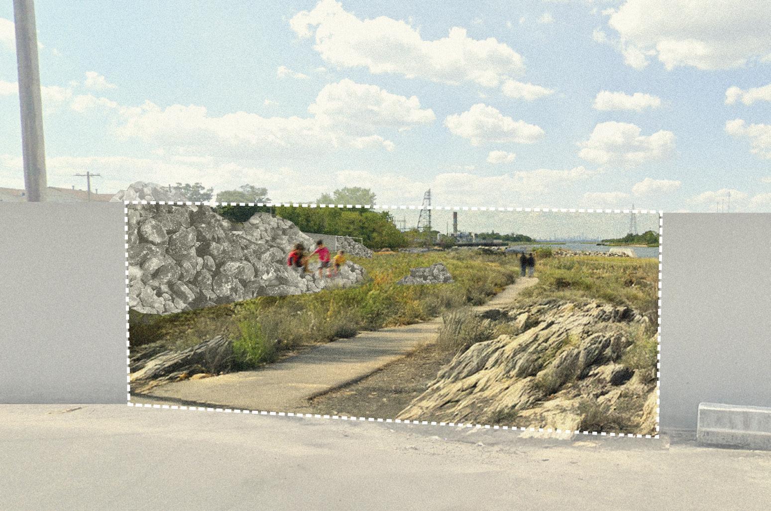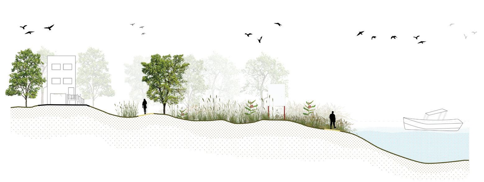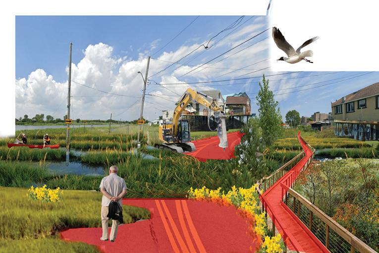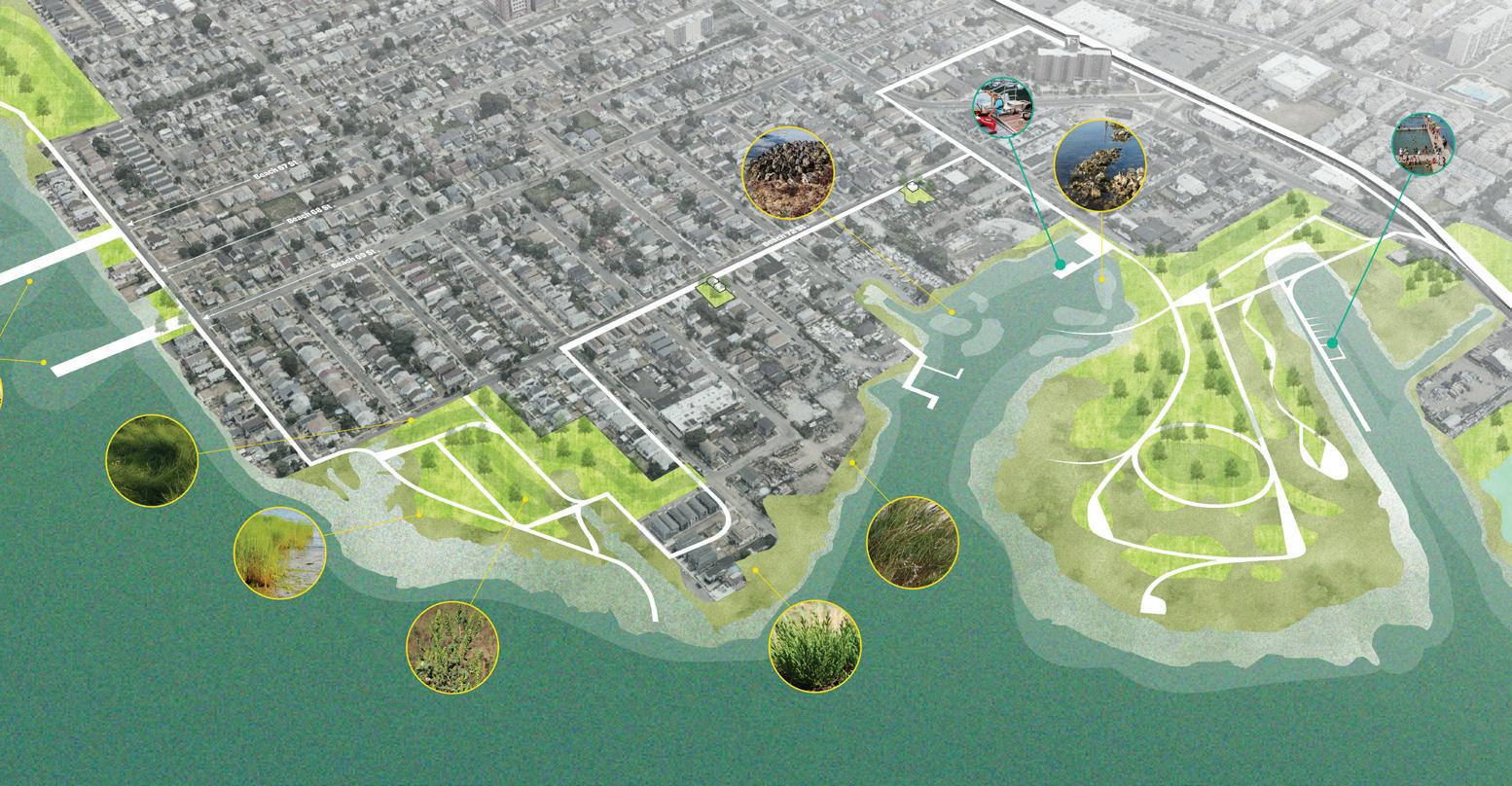 A system of raised pathways and boardwalks will connect existing green-spaces along the bay. Connection points will be placed at the end of each dead-end street to ensure that this new public space is accessible to everyone.