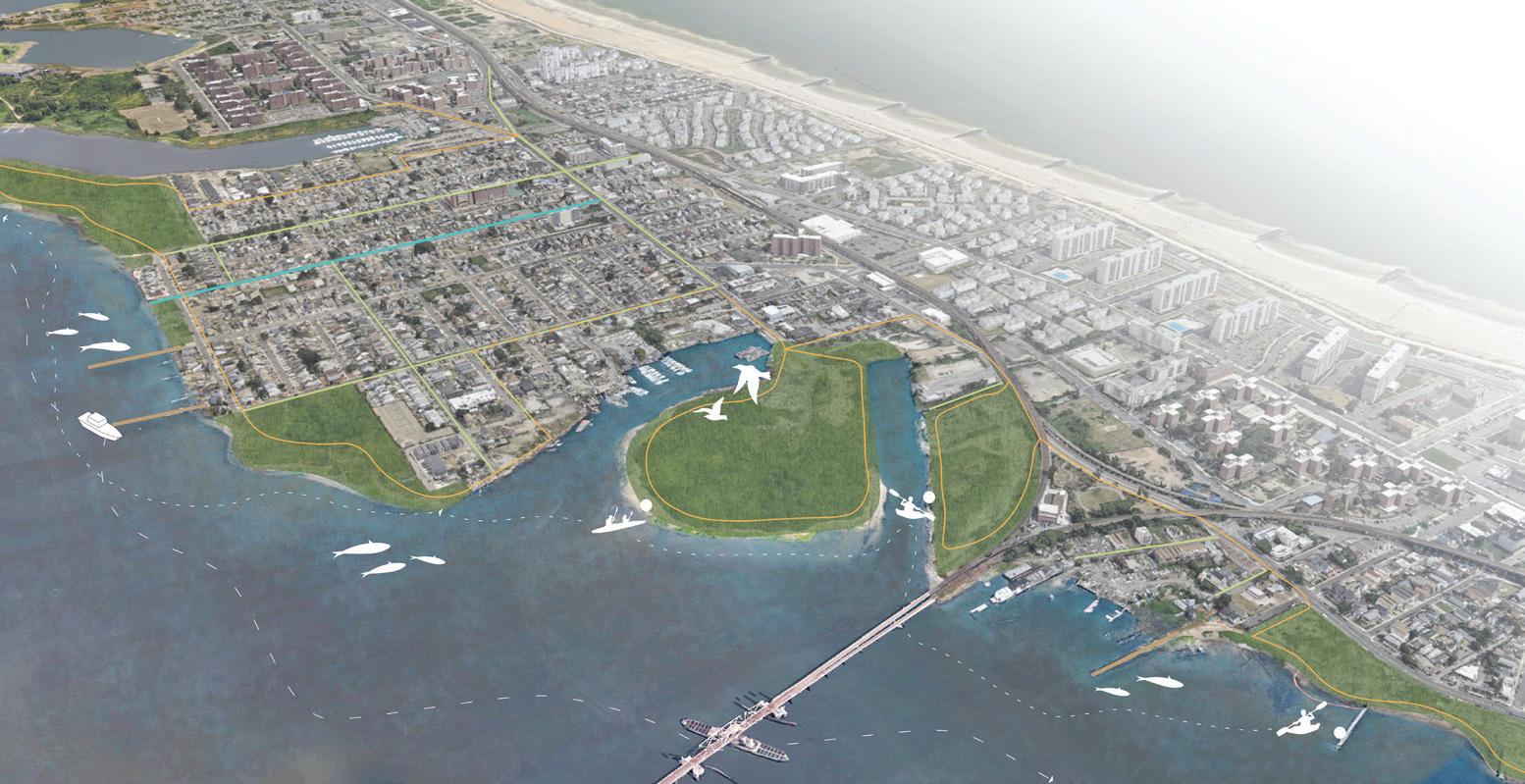 As relations between coastal waters and lands change through rising sea-levels, cloudbursts, and storm surges, life on the Rockaways will become increasingly challenged. It is expected that the peninsula will be inundated with tidal waters by 2100 and that inventive housing strategies of adaptation are needed, including repair, elevation, and even relocation. An expanded and resilient public realm will be essential to address decades of uneven development and to place community and climate justice at the heart of future designs.