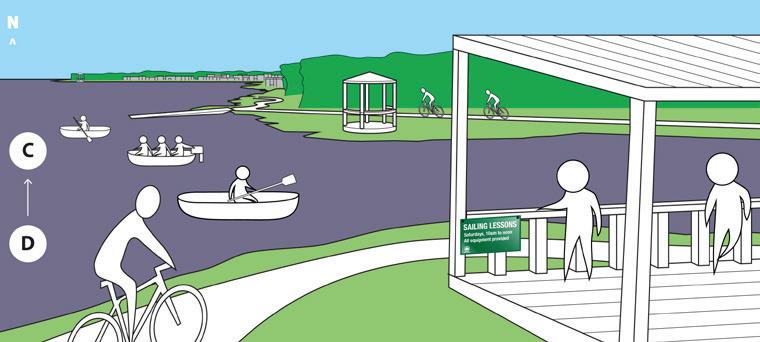 Connect pathways to water access points, enabling recreational activities like kayaking and tidal pool exploration, while creating a “bridge to the water.”