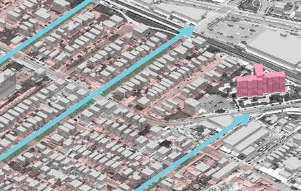This interdisciplinary project that involved the design of a new public realm and developing housing strategies started with planning