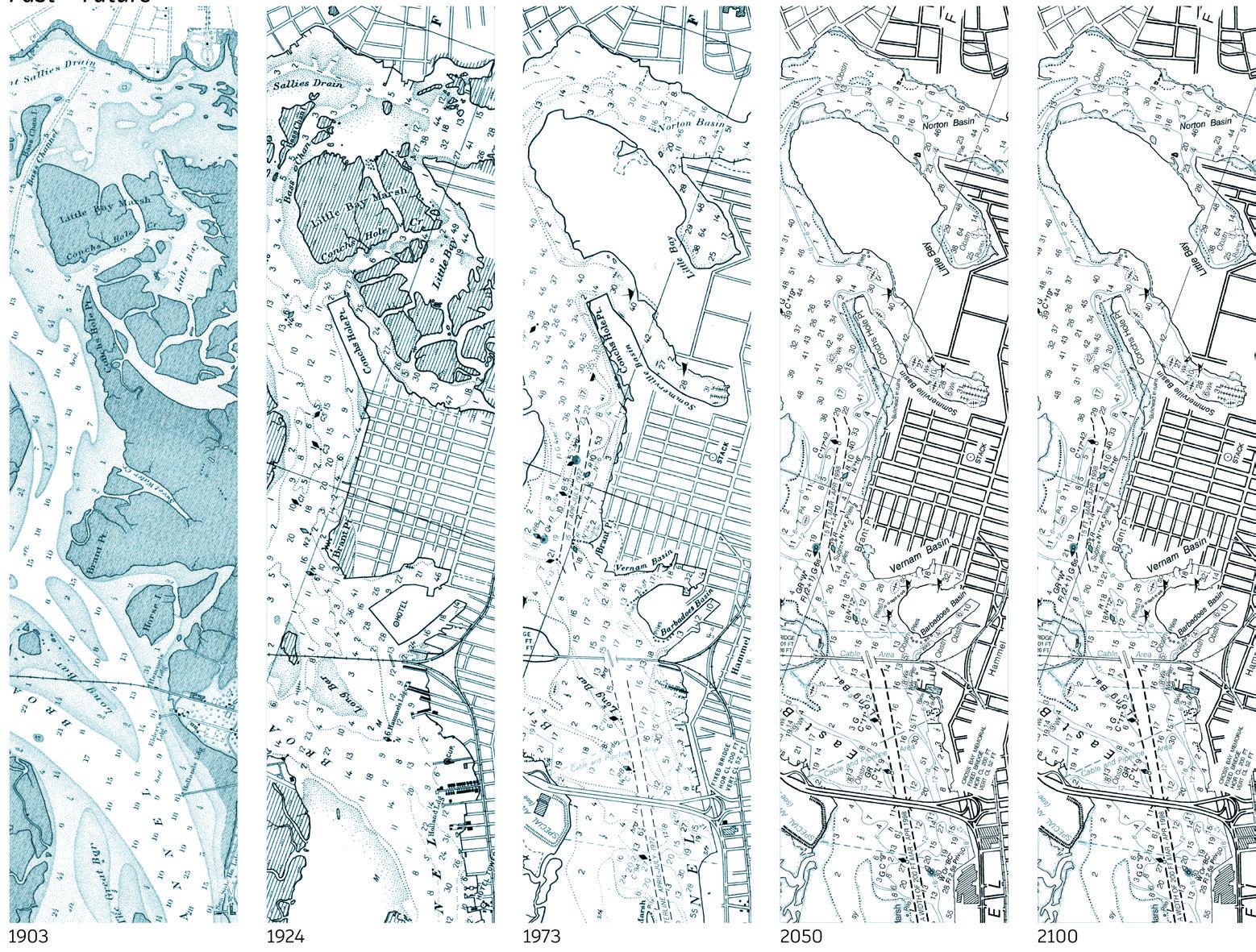 Project-based seminars and studios in the Department of Landscape Architecture provide a platform for collaborative investigations into the urgent environmental, social, and climate-related issues of our time. Our intention with these studies is not to provide definitive answers but to probe carefully mapped out questions—as resolutely stated in this report’s narrative—and speculate on possible vectors for action. Our project outcomes are meant to be a generative compilation of robustly argued frames for how communities might prioritize actions that should—or must—be taken soon. And it’s made clear in this report that decisions around rebuilding, retreat, and adaptation of built space and its public realm take time, arduous debate, and cooperation. The everyday work of coping with frequent flooding can intrude on the care and rigor that comes with crucial planning.