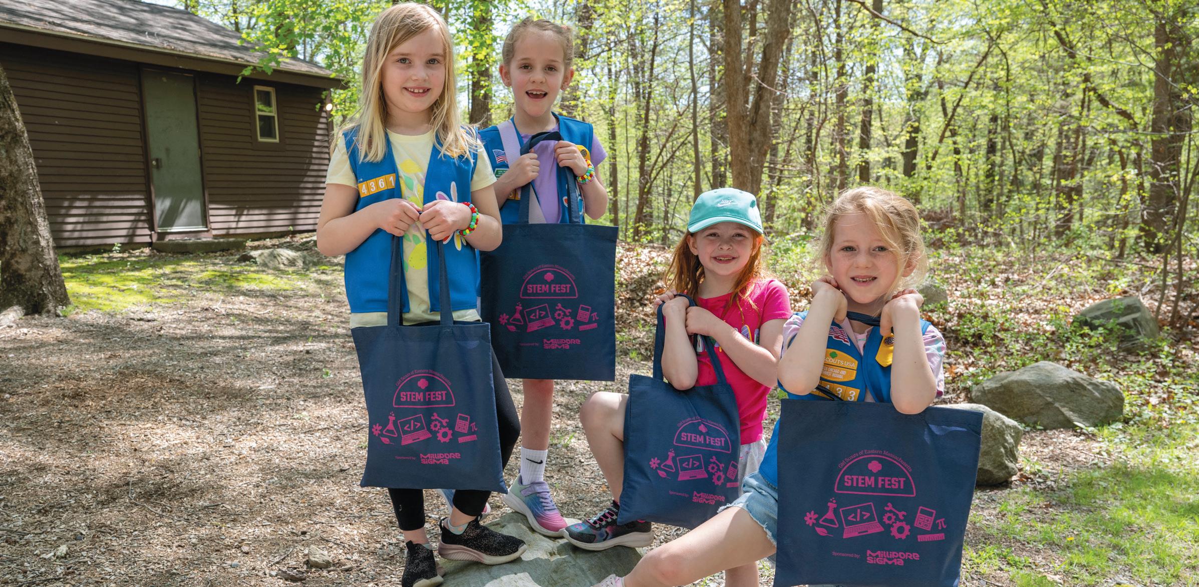 The exciting day provides hands-on science, technology, engineering, and math challenges to Girl Scouts of all ages. Held in late April at Camp Cedar Hill in Waltham, it draws 400+ attendees and over 50 presenting partners.
